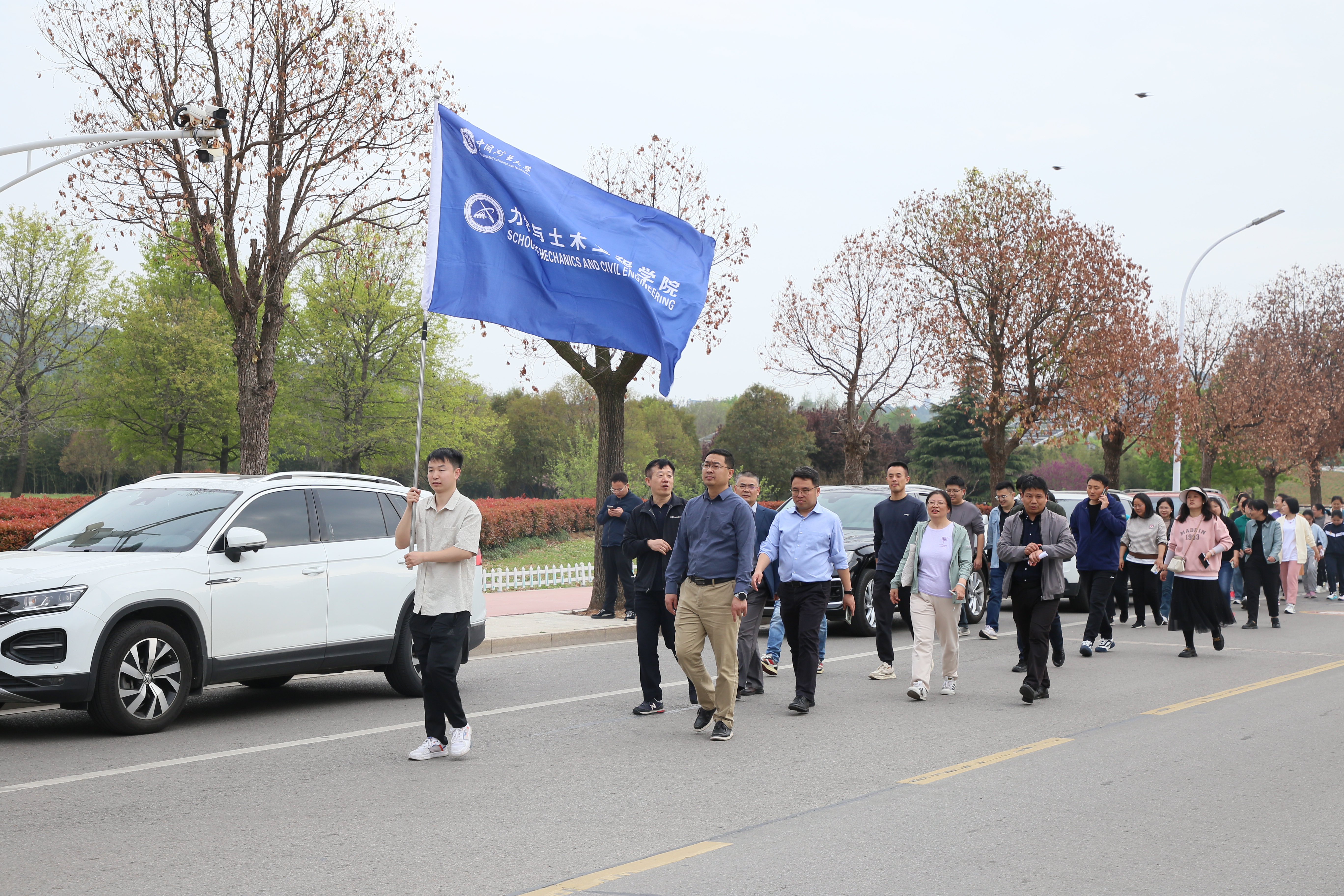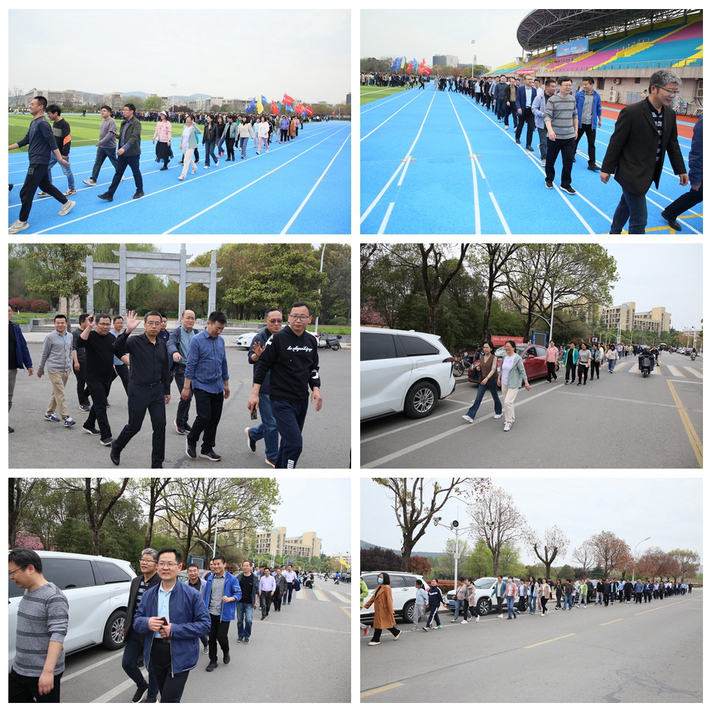 115 周年校庆的浓厚氛围,丰富教职工体育文化生活,倡导快乐工作、健康生活的理念,4月10日下午,力土学院工会组织教职工齐聚南湖校区第一运动场,参加学校“2024年教职工迎校庆健步行”活动。