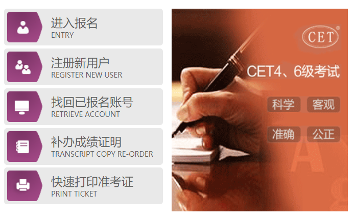 转教务部通知,2019年下半年全国大学英语四、六级考试将于2019年12月14日(星期六)举行,其中四级考试时间为9:00—11:20;六级考试时间为15:00—17:25。请报名考生于12月3日9:00以后登录全国大学英语四、六级报名网(//cet-bm.neea.edu.cn/)自行打印四六级准考证书,具体操作方法如下: