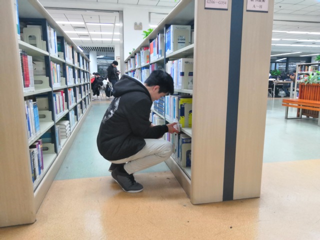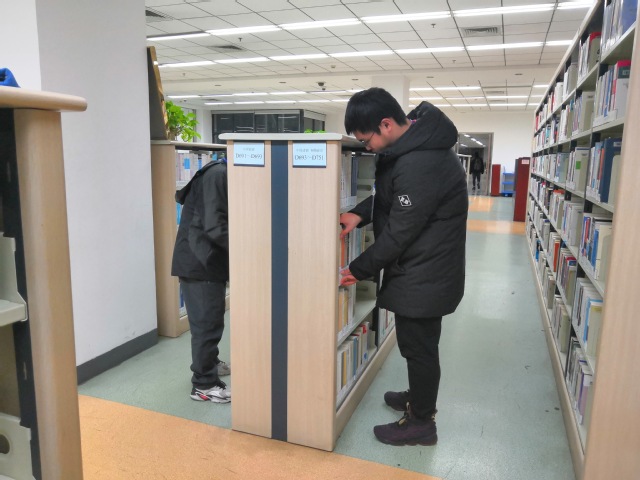 为了解决图书摆放不整齐的问题,方便同学们查阅书籍,12月27日,学院5·12青年志愿者协会在图书馆二楼开展了图书馆共建活动。