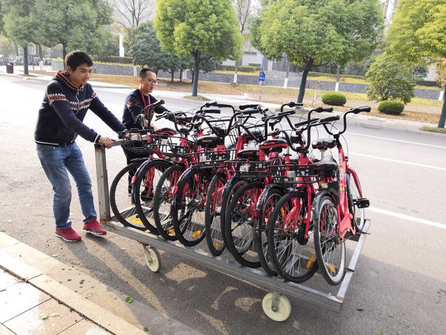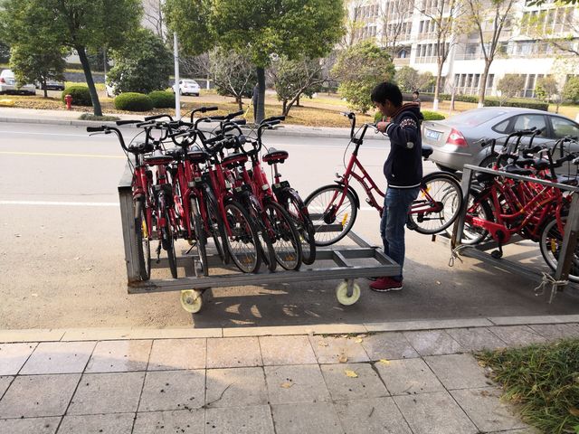 为了解决校园中小红车乱停放、分布不均匀的问题,更大程度上方便同学们的出行。11月24日,学院5·12青年志愿者协会开展了“便民校园行,搬运小红车”活动,将集中于两个校门处的小红车搬运到人流量较大的图书馆和食堂。