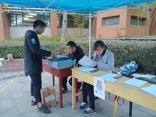 下午16:00,活动正式开始。志愿者先是通过活动官方公众号接收取件任务,在确认办理快速取件服务的同学的基本信息后,志愿者在物流园工作人员的帮助下进行快递出库,通过增设快速取件通道,减轻物流园的入库压力。完成出库工作后,志愿者们将快递存放至事先准备的快件待领取区,等待办理服务的同学前往取件。在活动过程中,志愿者始终保持热心与细心的服务态度,轻拿轻放,并将不同大小的快递分开放置,方便同学们进行取件。