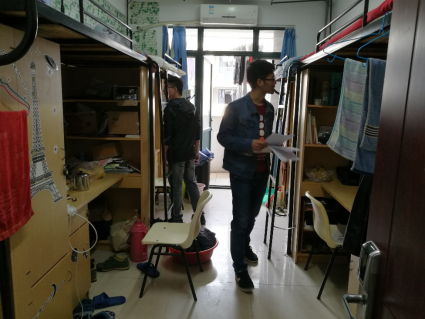 研究生会和党员工作站成员组成多个检查组对研究生宿舍进行卫生、安全大检查。