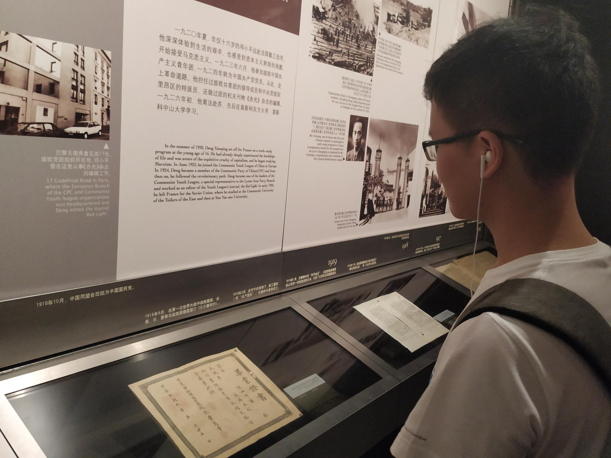 八月一日上午,实践团到达广安邓小平故居。依次前往邓小平故居陈列馆、邓小平缅怀馆进行参观学习。邓小平故居陈列馆由1个序厅,3个展厅,1个电影放映厅及相关附属设施组成,三个展厅分别以“革命时代”、“外事活动”、“乡音乡情”为主题。展厅主要陈列当时文件,影像资料。在参观过程中,实践团成员了解到邓小平波澜壮阔的一生,为他投身于革命,为人民奋斗的革命精神所感动。同时在历史书中所提及历史事件,如改革开放的提出、“一国两制”的构想等在展厅中有了更具体更鲜活地呈现。邓小平缅怀馆陈列着邓小平生前的生活上的各类物件,展示出一个伟大的革命家、政治家、军事家、外交家的另一面,是一个和蔼可亲的,爱家爱孩子,同时对祖国爱的深沉的老人。参观结束后实践团在邓小平铜像前合影留念。