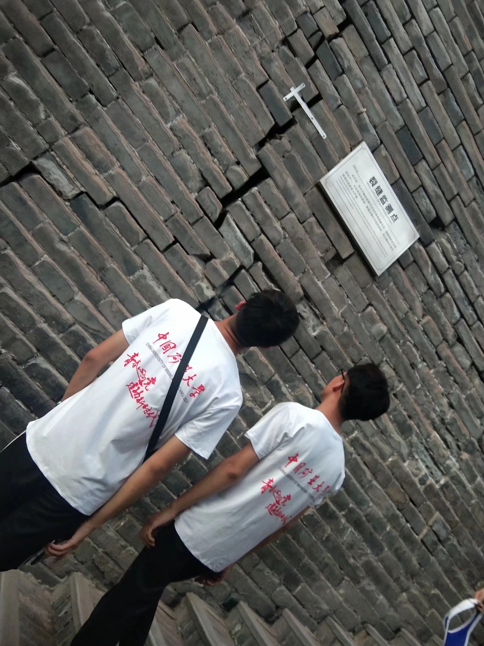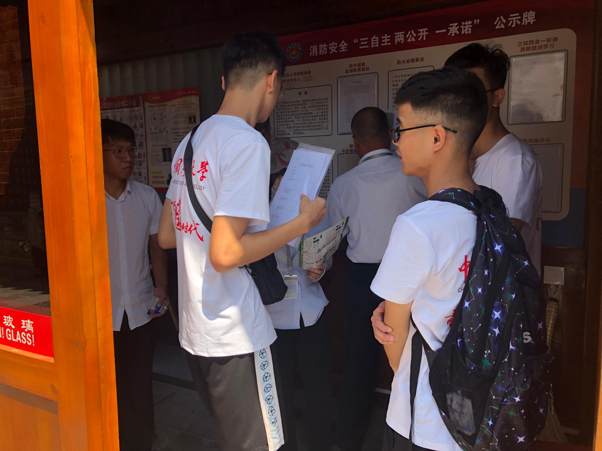 图2为团队成员向西安大雁塔保管所的工作人员咨询当前大雁塔的损坏程度以及相关保护的政策。