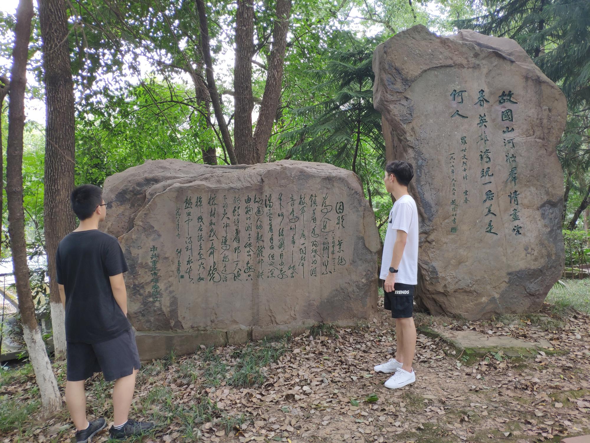 早上9点,实践团到达歌乐山烈士陵园。首先,团队成员来到刻有背景的石碑前,仔细阅读关于“一一·二七”政治大屠杀的这段历史。参观时,团队队员见到了革命烈士模型,一起沉思默哀。之后,团队成员阅读了近代革命者叶挺于1942年创作的现代诗《囚歌》。队员们表示:此诗揭露了国民党反动派的丑恶行径、极端虚弱的本质,表现了革命者的伟大气节,抒发了为革命献身的壮志豪情。全诗明白晓畅,通俗易懂,如脱口而出,但感情炽烈,气势豪迈,意境表达清晰完整。最后,团队成员瞻仰烈士石碑,在死难烈士之墓前三鞠躬,以示对革命英雄的深切哀悼。
