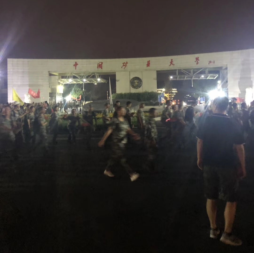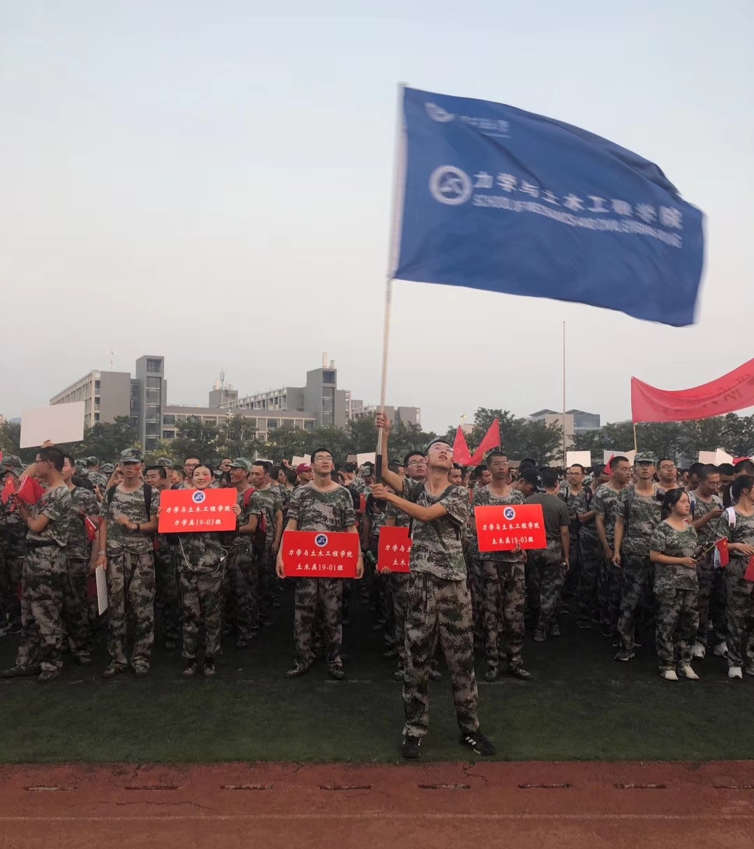 下午6点,学院全体新生提前到达三运足球场集合,同时将高年级的志愿者分配到各个班级与新生交流,并协助老师们管理秩序。随后,在教官的主持下,各学院新生和志愿者在操场上唱起了《歌唱祖国》,同学们也都自发的挥舞起手中的红旗。悠扬的歌声和鲜艳的红旗宣告着本次拉练的正式开始。