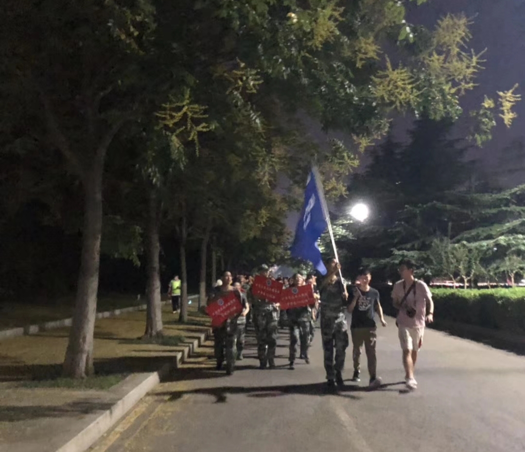 本次拉练的线路从南湖校区东门开始,向北行至十字路口,经泉山公园北门、泉新路、黄河路等路段,最终返回东门,全程往返约十公里。拉练途中,学院新生队伍整齐有序,同学们跟随在学院的旗帜之后,以班级为单位一路前行,许多同学自发地唱歌打气,嘹亮的歌声伴随着清风在夜色中飘扬。