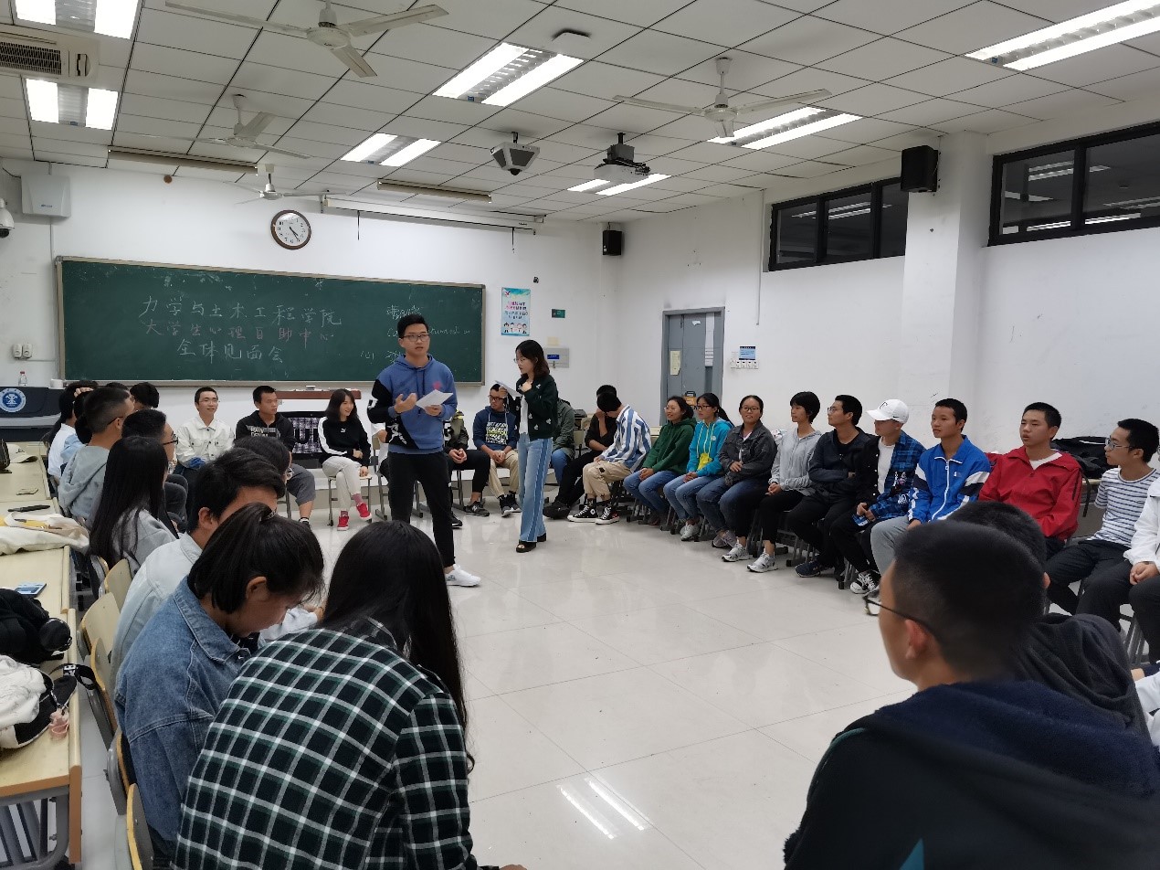 紧接着项目部、设计部、心理部、团辅部依次进行了自我介绍。在才艺表演阶段,潘子豪一首吉他弹唱将气氛活跃起来,小提琴独奏、重庆话版rap更将现场气氛推向高潮。最后活动在欢声笑语的团辅游戏中结束。