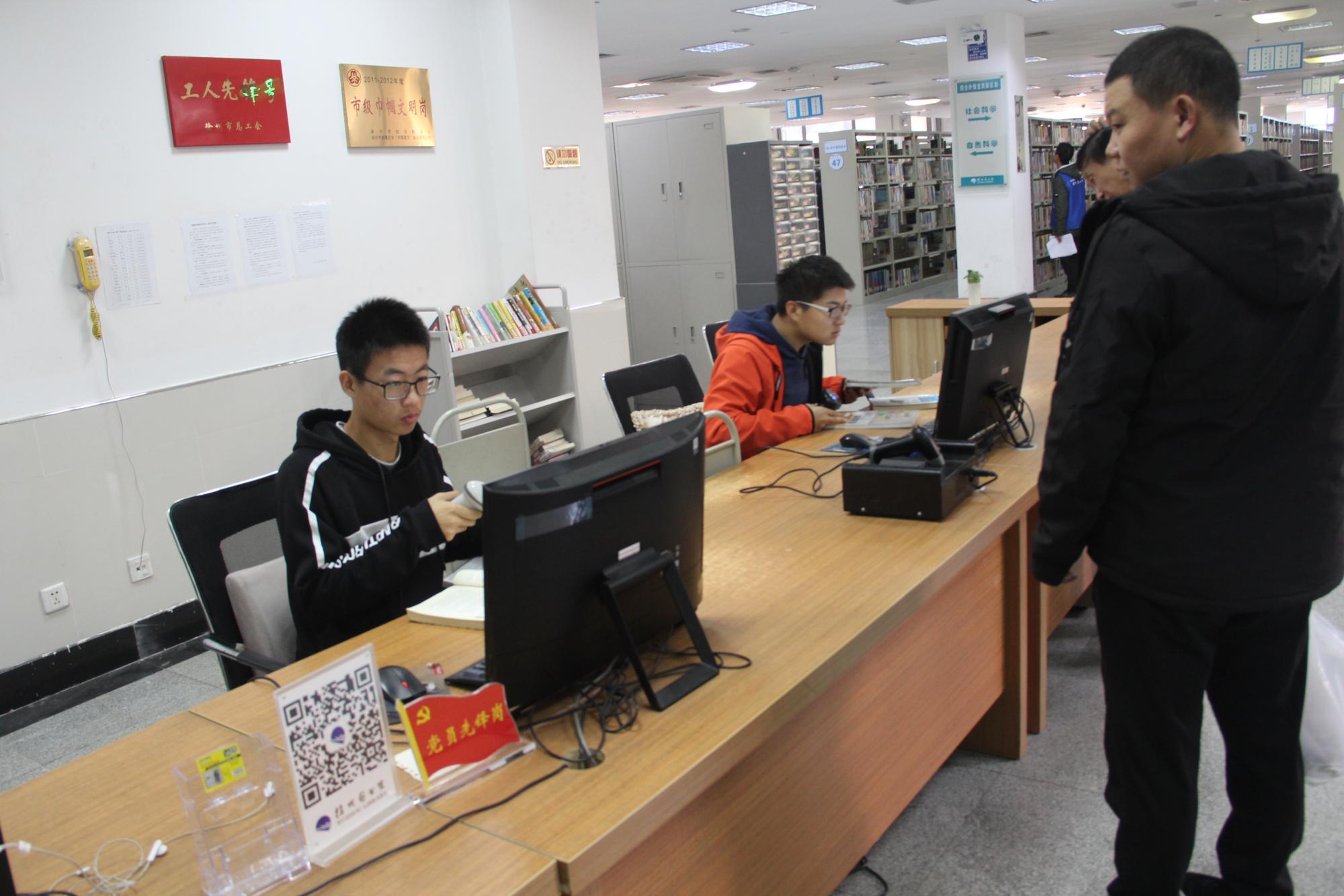 志愿者在市图书馆开展志愿活动