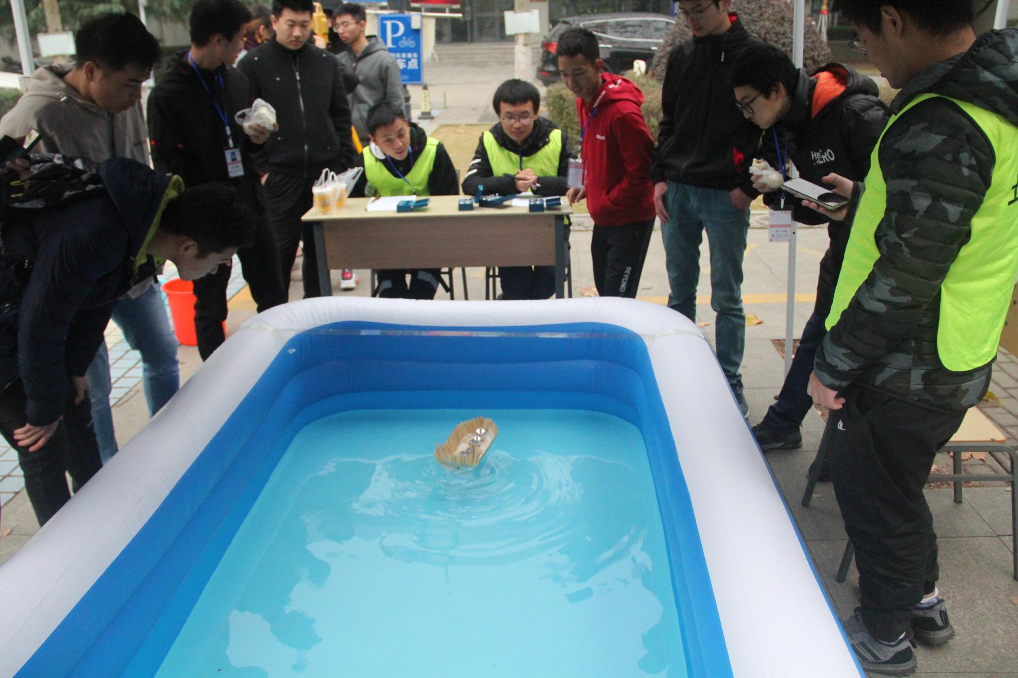 在调试完成后,参赛选手们带着各自的签船陆续来到竞赛池旁。选手们在等待的同时,也不忘关注比赛情况,为成绩优秀的队伍喝彩。现场工作人员也本着公平公正的原则,小心谨慎地记录每一个成绩,使得比赛现场活跃却不失秩序。