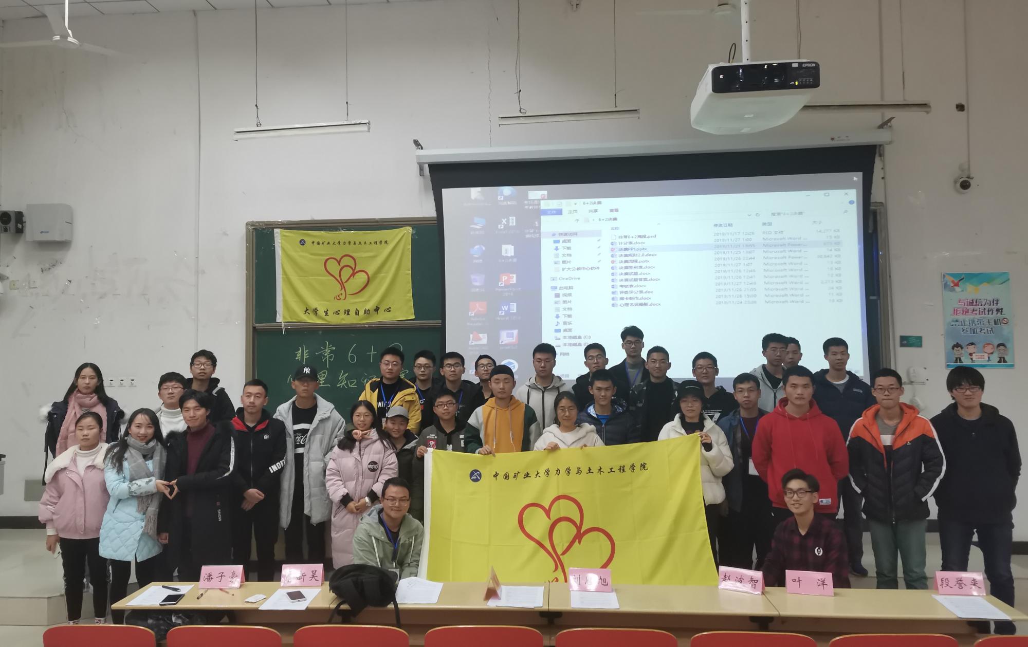 为提高大学生的心理素质和心理健康水平,引导同学们积极了解身心健康知识,11月27日下午,由学院大学生心理自助中心主办、数学学院等8个学院心助中心协办的“非常6+2”心理知识竞赛决赛在博二C101成功举办。