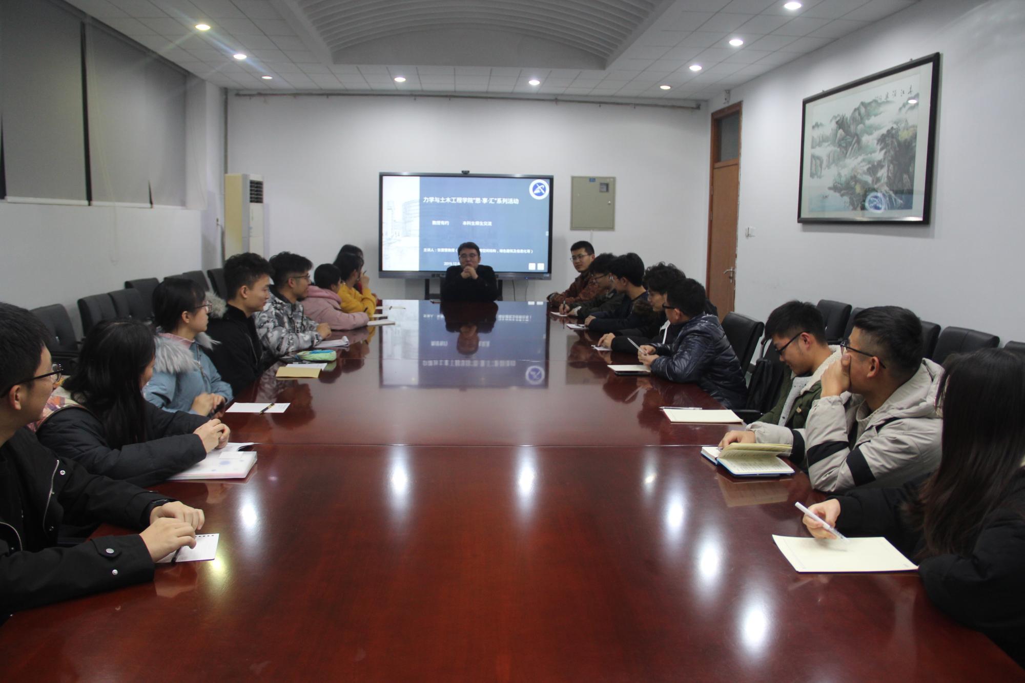 活动伊始,张营营教授从现代教育的话题入手,向同学们说明了江苏省教育水平较高的优势,但是面对竞争日益激烈的教育环境,我们还需增强自身竞争力。而后张教授结合了自身学习经历,鼓励同学们:人生最重要的就是直面挫折,不为困难所打败,才能一步步提升自己,向着更好的方向发展。张教授还向同学们介绍了自己招收研究生的具体要求,他告诉同学们:在本科阶段一定要学好专业课,在今后的发展中要充分利用好现有资源,特别是要抓住矿大的“大创”项目计划,努力提升自己,发展和完善自身的专业素养。