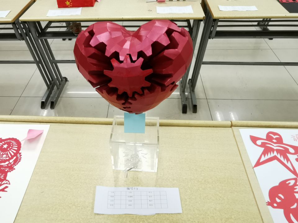 本次活动由学院5•12青年志愿者协会主办,将中国民间文化艺术瑰宝——纸艺作为活动形式,将中国五千年文明的承载者——纸作为活动载体,为参赛者提供了广阔的创作空间。12月7日对参赛作品进行第一阶段评分,大批优秀纸艺作品涌现。其中不乏纸制立体长城、折纸拼接国旗等形式新颖的作品。活动现场负责人之一的董浩辉表示今年的作品质量较去年有较大提升,不论是美感还是精细程度,都达到了往届未曾企及的高度。12月8日,对作品进行第二阶段评分,不同于第一阶段由各协办方代表直接为作品打分,第二阶段采取了作者本人现场讲解作品再进行打分的方式。最终,经过评委讨论评选出了一等奖两组,二等奖四组,三等奖六组,鼓励奖若干。其中第八组与第九组脱颖而出,获得了一等奖。活动结束后,部分参赛作品将在未来几天以献爱心的方式发放到社会(包括赠予孤独老人、徐州军区战士等)。这不仅解决了作品归宿问题,也让活动本身的价值意义多元化,更让温暖在寒冬得以传递。
