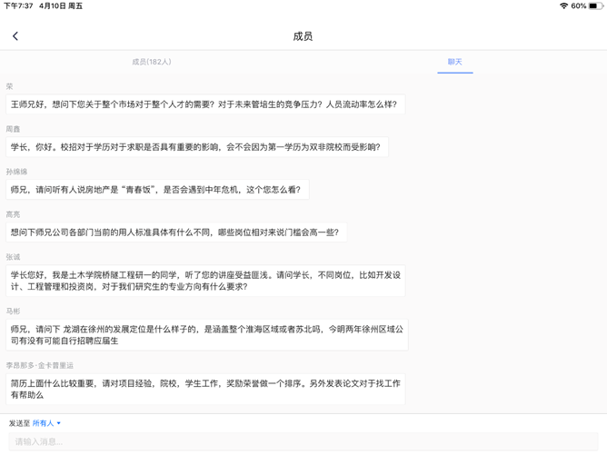 4月10日晚19时,如期举办了“地产云论坛-投资岗”视频讲座,活动通过腾讯会议APP进行线上直播。龙湖徐州地区投资总王元伟先生应邀参加,针对学生较为关心的地产行业问题做了详细的剖析,来自全校各专业的190余名学生参与了此次视频讲座。