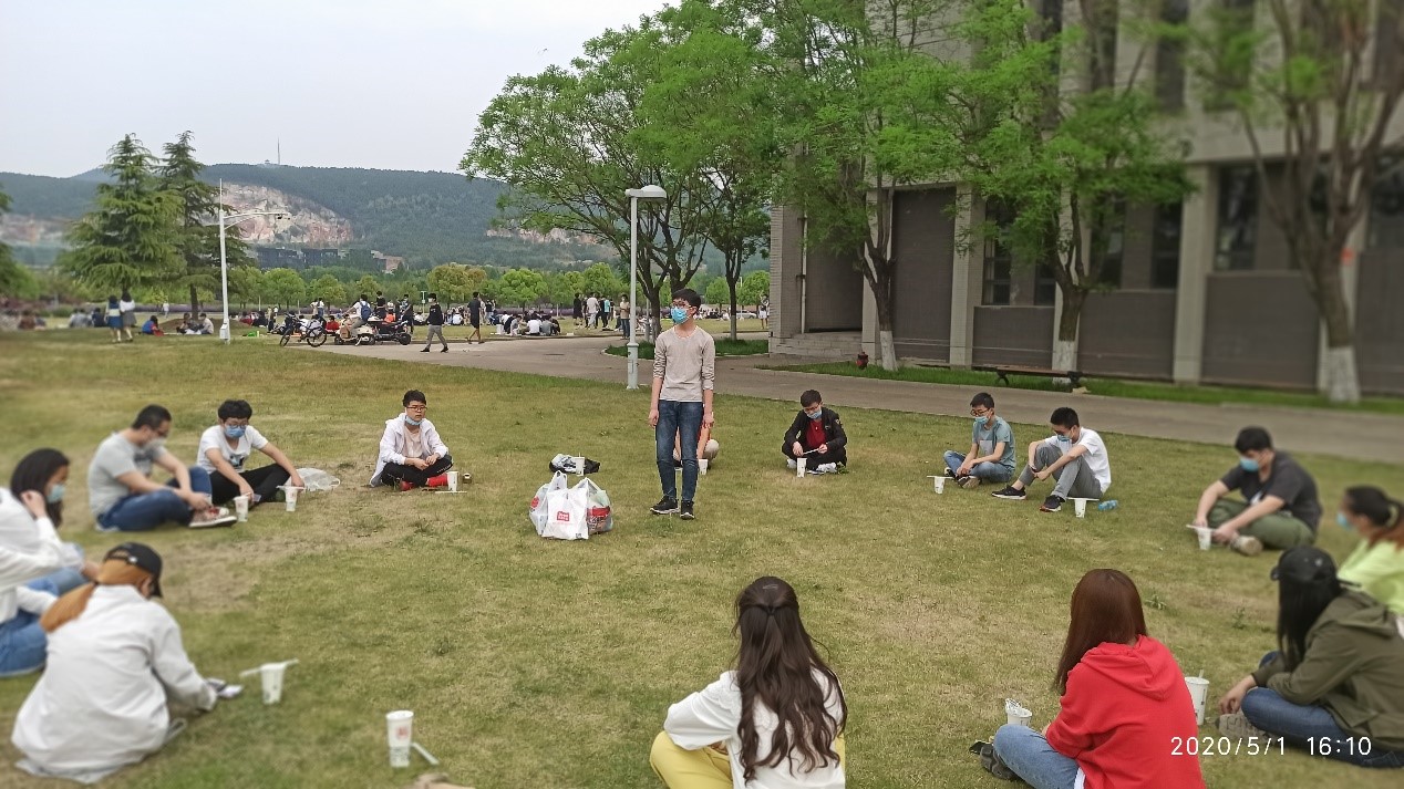五月一日下午,建环18-1班新学年的第一次线下团辅活动在教五大草坪举行,班主任王文龙老师参加活动。活动通过做游戏等形式增进彼此之间的感情,旨在增进班级大家庭的凝聚力,给同学们提供一个交流和分享自己的机会。