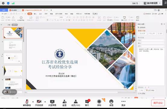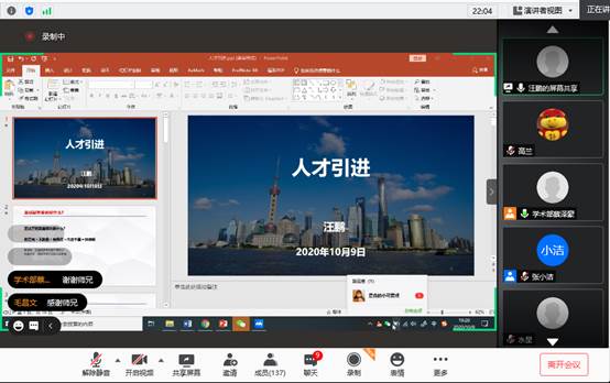 为应对疫情给研究生就业带来的严峻挑战,进一步扩大就业选择方向,实现研究生的高质量就业。10月9日晚上7点,土木学院研究生会以网络视频的形式组织了线上公考经验分享会,成功就业的三位研究生苏运河、汪鹏、吕轶楠受邀主讲,由蔡泽豪同学主持,150多名本科生和研究生参加了分享会。