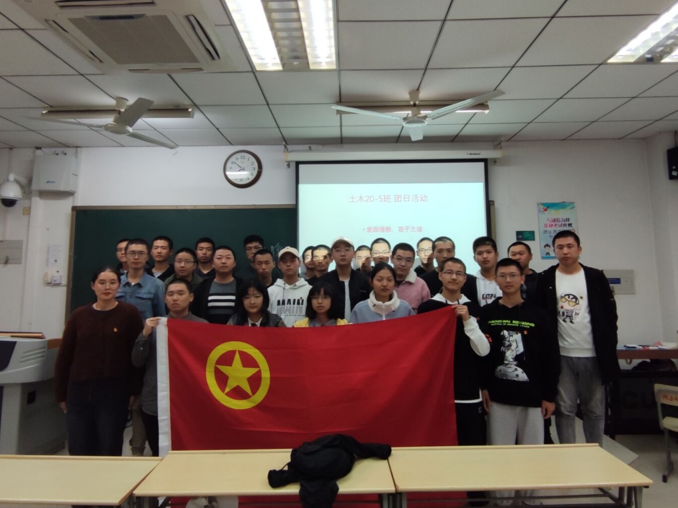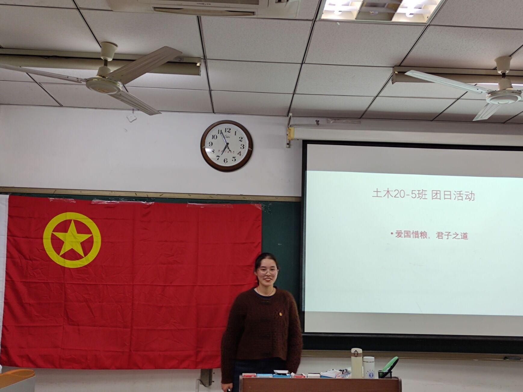 土木类20级5班于10月24日晚7时在博学四号楼C311开展了以“爱国惜粮,君子之道”为主题的团日活动。