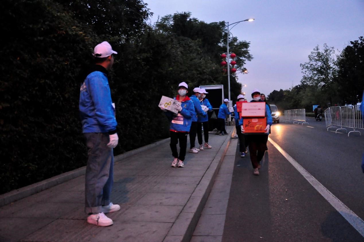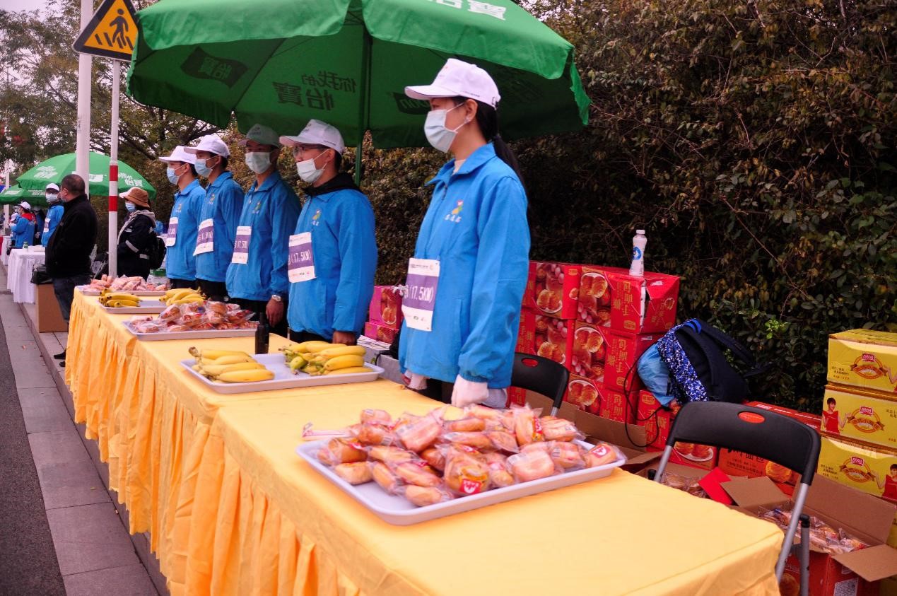 上午8时,马拉松正式开赛。在选手到达前,志愿者们仔细布置好为参赛选手们准备的各项补给物资,准备以最好的精神面貌迎接每一位参赛选手。补给站的志愿者们除了为参赛选手及时补充所需物资外,还不停为他们加油打气,鼓励他们继续向前。随着大多数参赛选手经过第6号补给点,赛事也接近尾声。志愿者们对现场进行收尾工作,本次志愿活动落下帷幕。