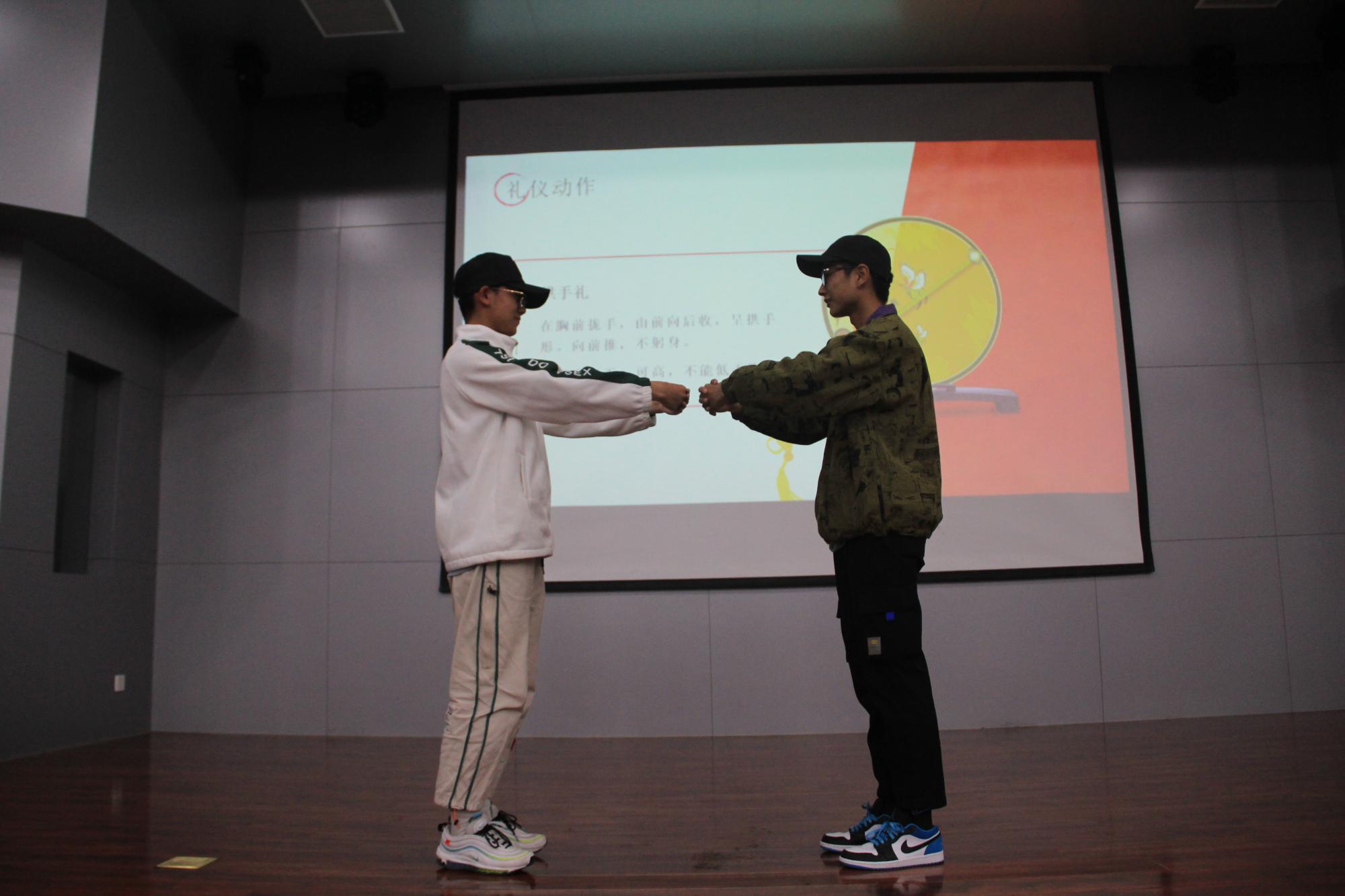 此次比赛由现场答题、组合展示和风采展示这三个部分组成。在现场答题过程中,参赛选手奋笔疾书,展现着自己的礼仪知识储备量。在组合展示环节中,通过抽签的方式,参赛选手每两人被分为一组,每组需要完成相应的与礼仪有关的动作。通过这一环节,参赛选手们对中国传统文化中的礼仪动作有了更深刻的认识。比赛间歇,“抖便利贴”小游戏在活跃气氛的同时拉近了参赛选手之间的距离。在最终的风采展示环节中,每位参赛选手以走T台的形式展现了自己的风采与活力。
