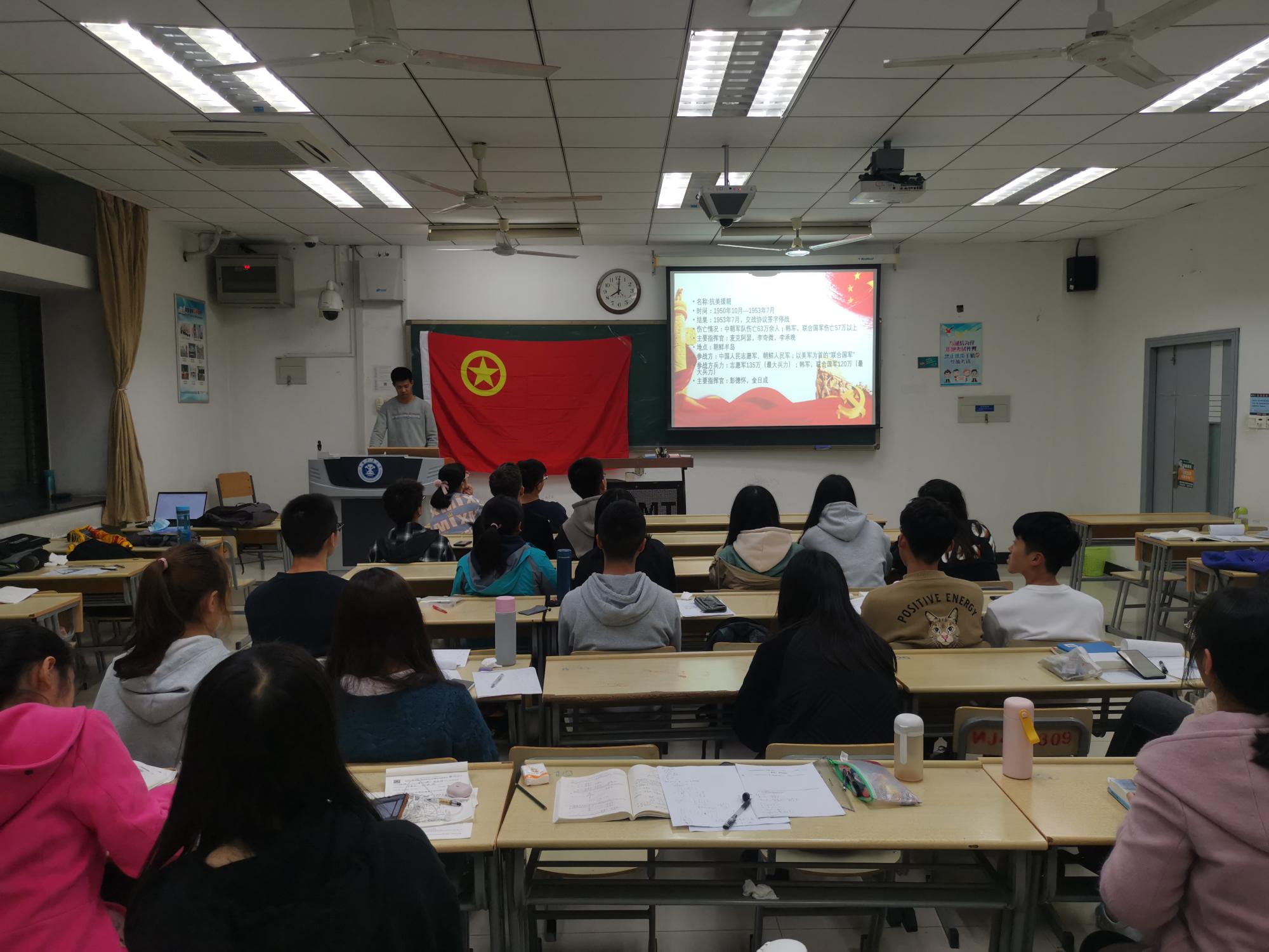 为帮助同学们重温抗美援朝的斗争历史,缅怀革命先烈,增强同学们的使命感、危机感和国家归属感,11月18日,学院工程管理19-2班于博四C307教室开展“青春心向党,热血报家国”主题团日活动。本次活动由团支书郑琦主持,学院工程管理19-2班全体同学参与了活动。