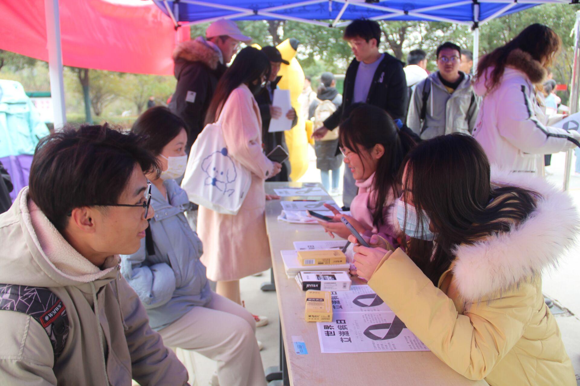大学生心理健康教育中心主办,土木学院携手设计学院、体育学院联合承办的“携手防疫抗艾,共担健康责任”艾滋病户外宣传活动于一食堂广场举行。