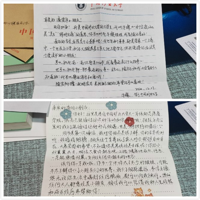 四位同学分别负责朗诵课、思想品德课、美术课和故事课的学习与指导。牛璨同学通过引人入胜的文学作品和活泼生动、简单易懂的语言为孩子们讲解了朗诵的基本要领,让孩子们体验到了朗诵的乐趣;陈兆昕同学从生活中小细节出发,为孩子们耐心讲解注意事项,引导孩子们养成正确的学习和生活习惯;任佳瑶同学在课堂上的悉心指导孩子们学习基本的绘画技巧,帮助孩子们发散思维,提高创造力;胡丁月同学的故事课生动有趣,娓娓动听,让孩子们沉浸其中。网课结束后,几位同学还给香店小学的孩子们写了亲笔信,鼓励孩子们认真学习,树立目标,享受美好的校园生活。