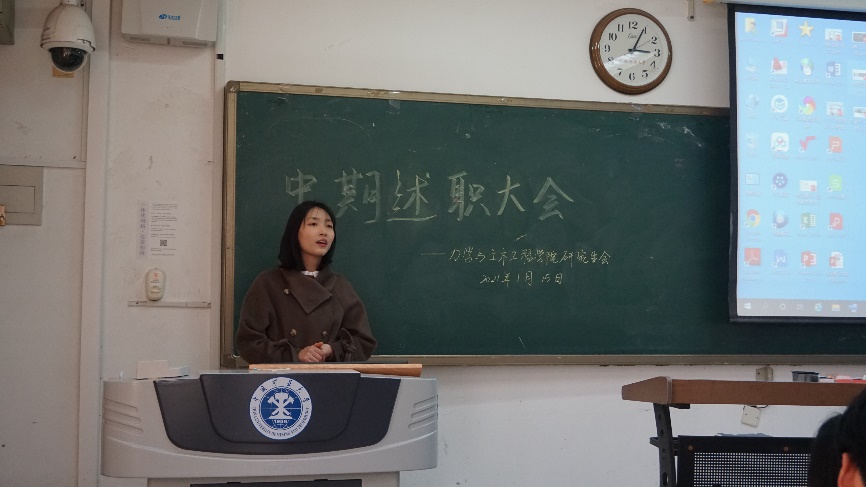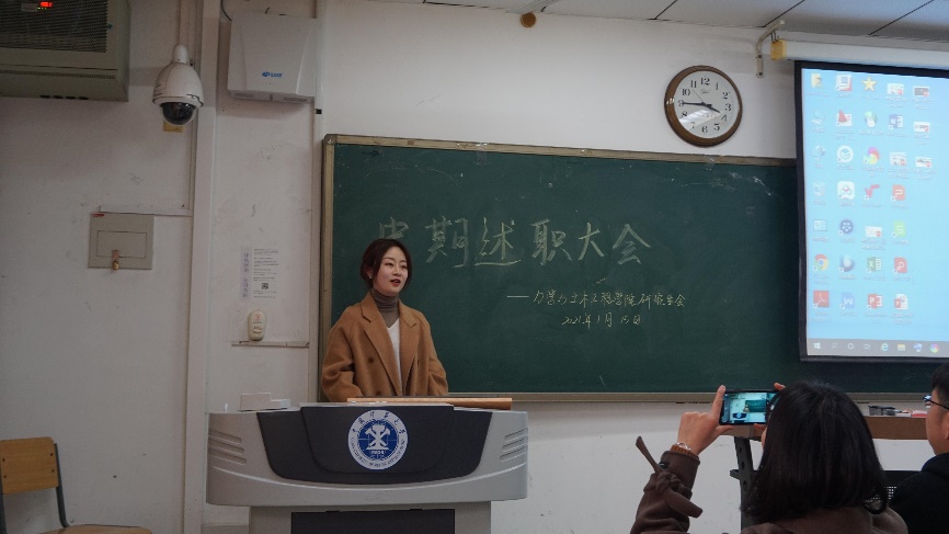 最后,张琳老师紧密围绕着学院中心工作,对这半年来研究生会做的工作进行了表扬,同时对四个部门的工作内容分别进行了点评,也对研究生会工作的不足之处提出了宝贵的意见。张琳老师对研究生会下学期的工作提出了更高的要求,指出学生骨干要有担当,时刻记得自己代表了学院的形象。也希望每一位加入研究生会的成员都能有所成长、有所收获。