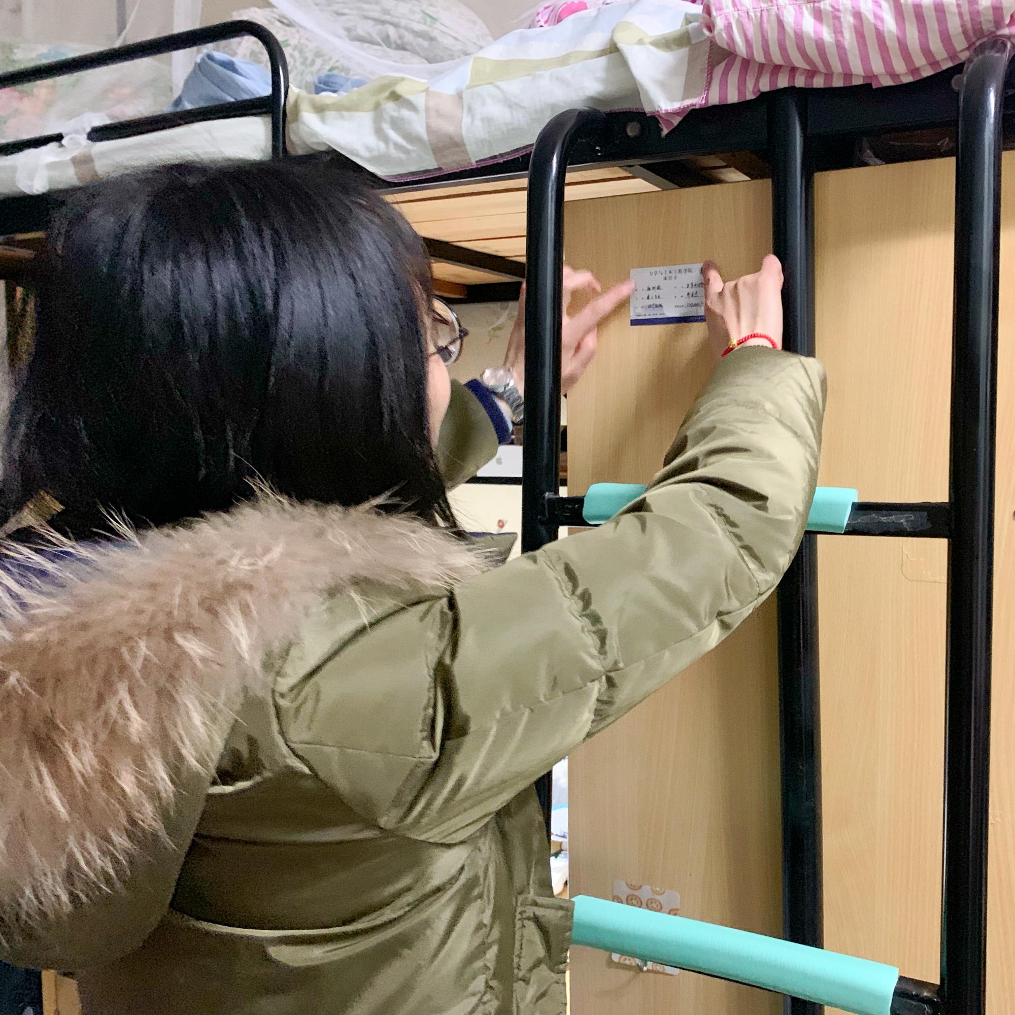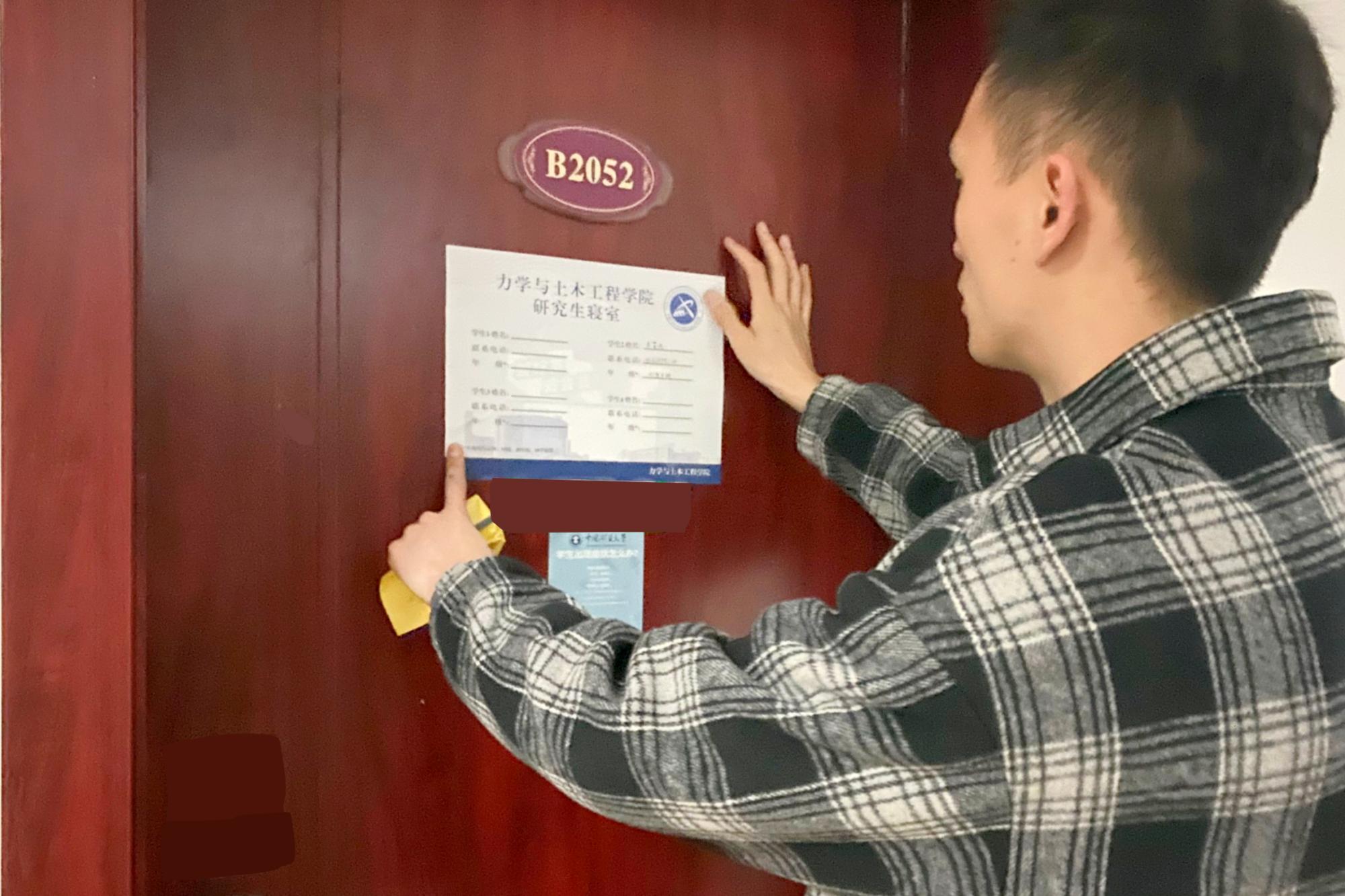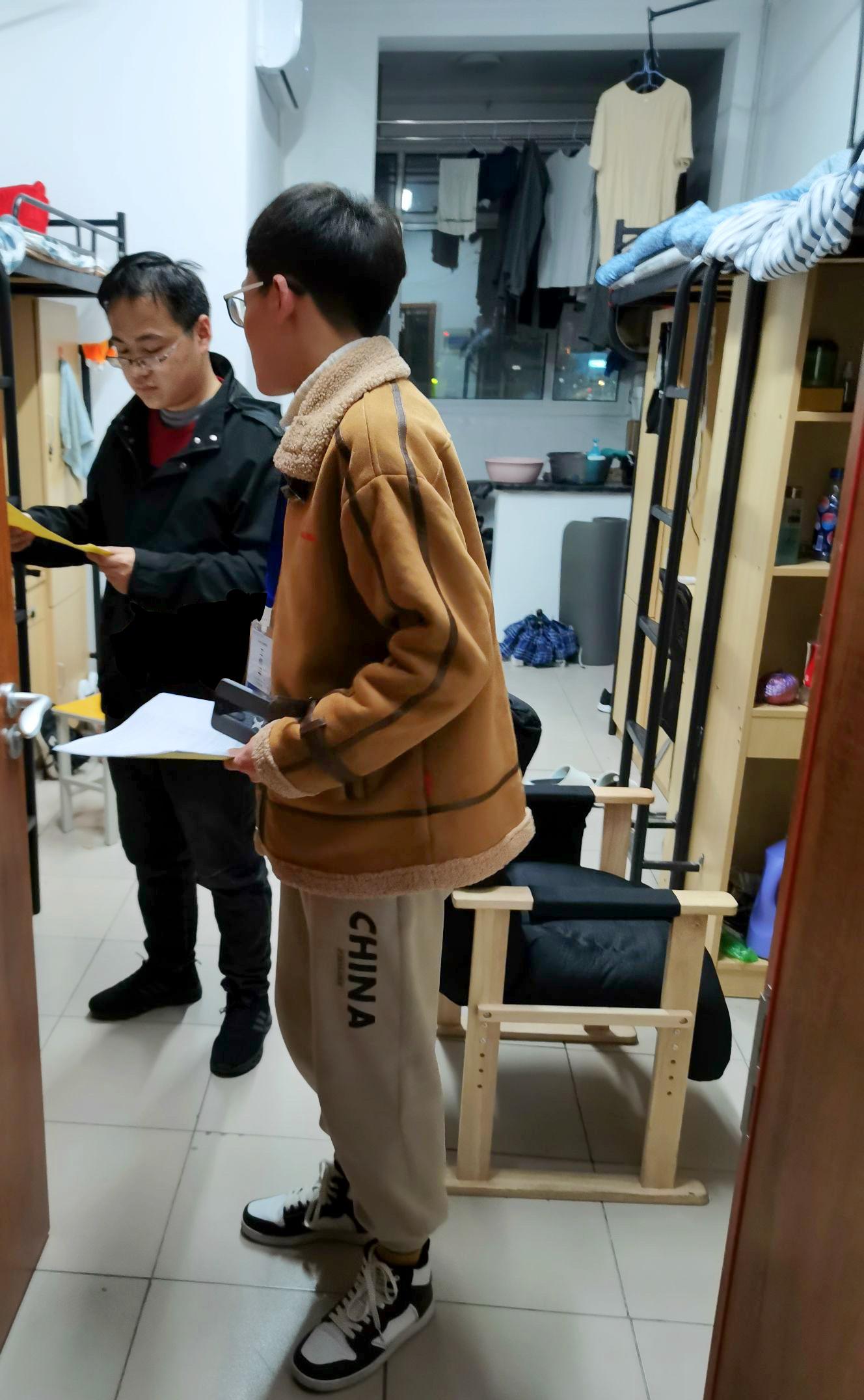 研究生宿舍发放学院“宿舍门贴”与“床位卡”,并对宿舍的卫生情况和用电安全等多方面进行检查。整个过程中,同学们积极配合,将门贴和床卡张贴在指定位置。检查发现大部分宿舍桌面、地面干净整洁、用电合理,但个别宿舍仍存在一定的卫生问题,检查人员对这些宿舍进行了提醒并建议其整改,下次检查这些宿舍也将成为检查的重点。