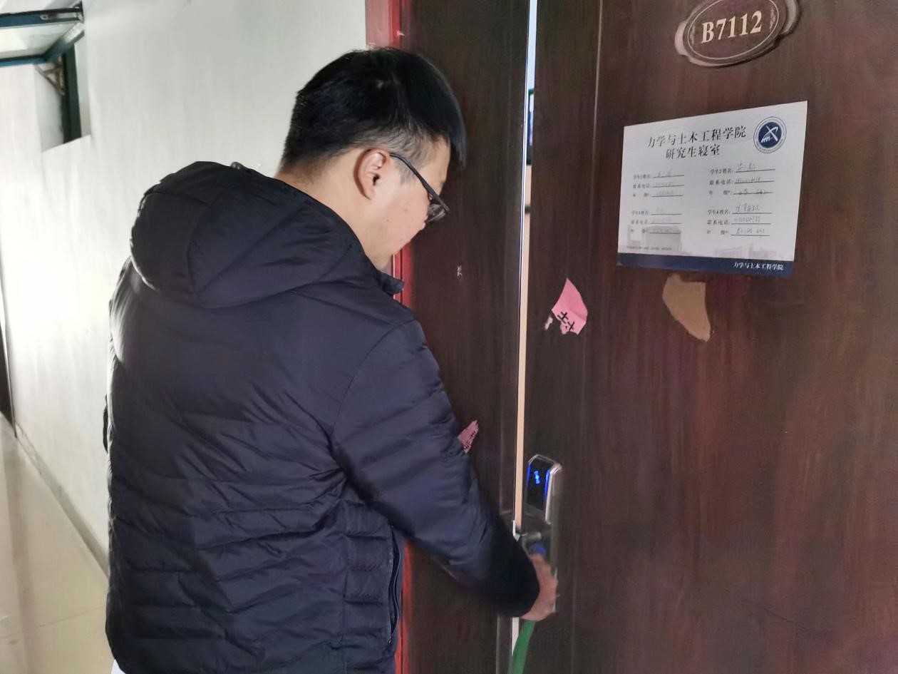 研究生会生活部部长刘潮汐带领生活部成员和研究生自管会成员一起进行了本次安全卫生抽查工作。