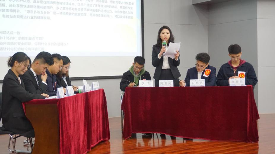 比赛最后,评委嘉宾融创地产人力经理潘仝老师给同学们提出了几点建议:面试首先要明确意向岗位,并客观地分析自身能力与岗位的匹配度,其次要注意实习时不仅要了解整个行业,各个部门的工作流程,而且还要深入地学习和认知自己喜欢的意向岗位。