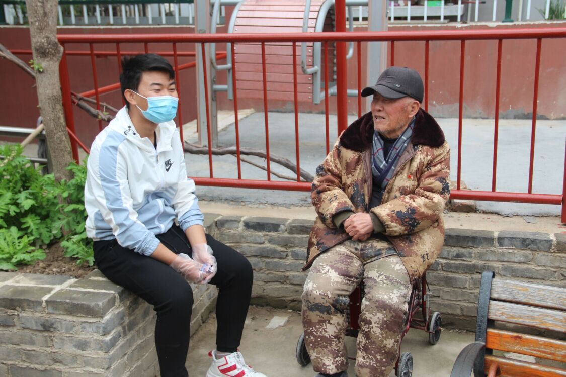 志愿者与老人聊天