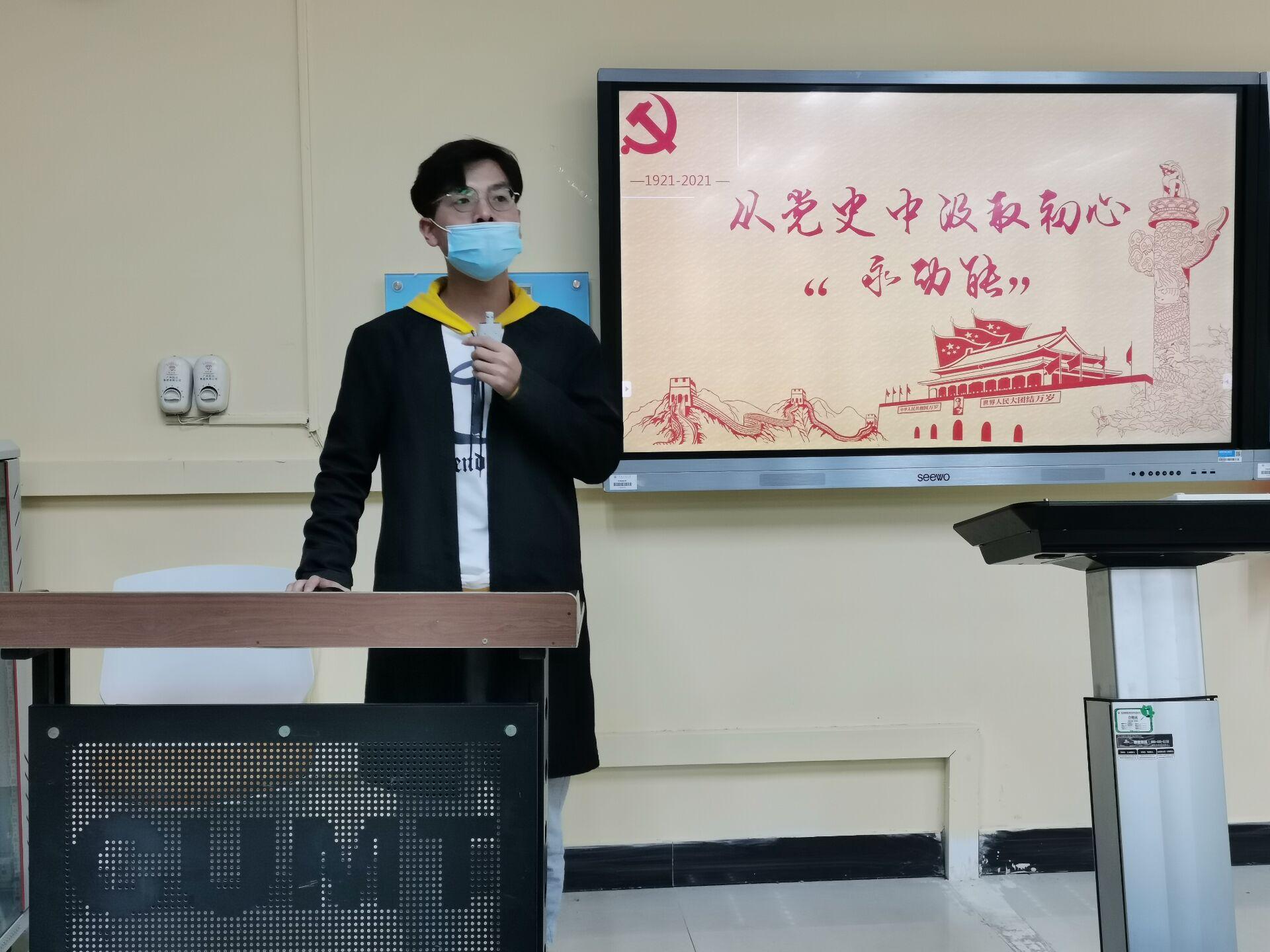 活动伊始,李景琦同学从新民主主义革命到改革开放详细为大家介绍了中国共产党的历史。一次次重要会议的开展,串联了每一个历史时期。在活动第二部分开始前,由团支书提议,同学们重温了入团誓词,铿锵有力的宣言,唤醒了同学们内心深处的团员意识。同时,活动中还穿插了趣味党史知识竞赛,提高了活动的趣味性。同学们踊跃发言,并通过积极探讨给出了正确的答案。活动最后,同学们观看了中国共产党的百年述职报告,一幕幕的历史时刻从荧幕闪烁,同学们也颇为动容。