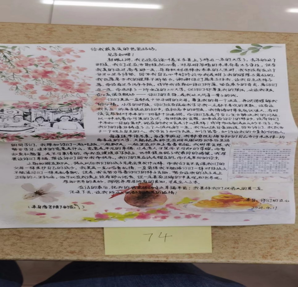 为让同学们体验不同的通讯方式,减少对手机等电子产品的使用,近日,学院开展了以“尺素传真情,家书抵万金”为主题的微家书活动。此次活动旨在让同学们拿起纸和笔写一封家书,心怀感恩与家人们多一些沟通和交流,致以家人一个亲切的问候。