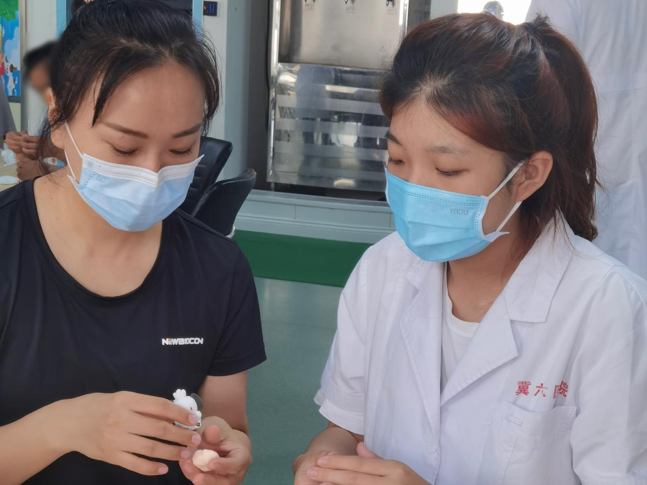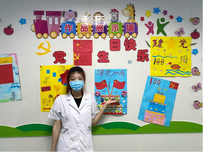 8月9日,实践团成员首先向儿少精神科主任了解熟悉了孩子们的基本状况。随后,实践团成员在医院康复科老师的指导下,一同和孩子们制作完成了建党一百周年主题海报墙。8月10日至13日,实践团成员协助康复科老师完成了超轻粘土教学、价值拍卖、音乐治疗、绘画教学等团体心理活动。