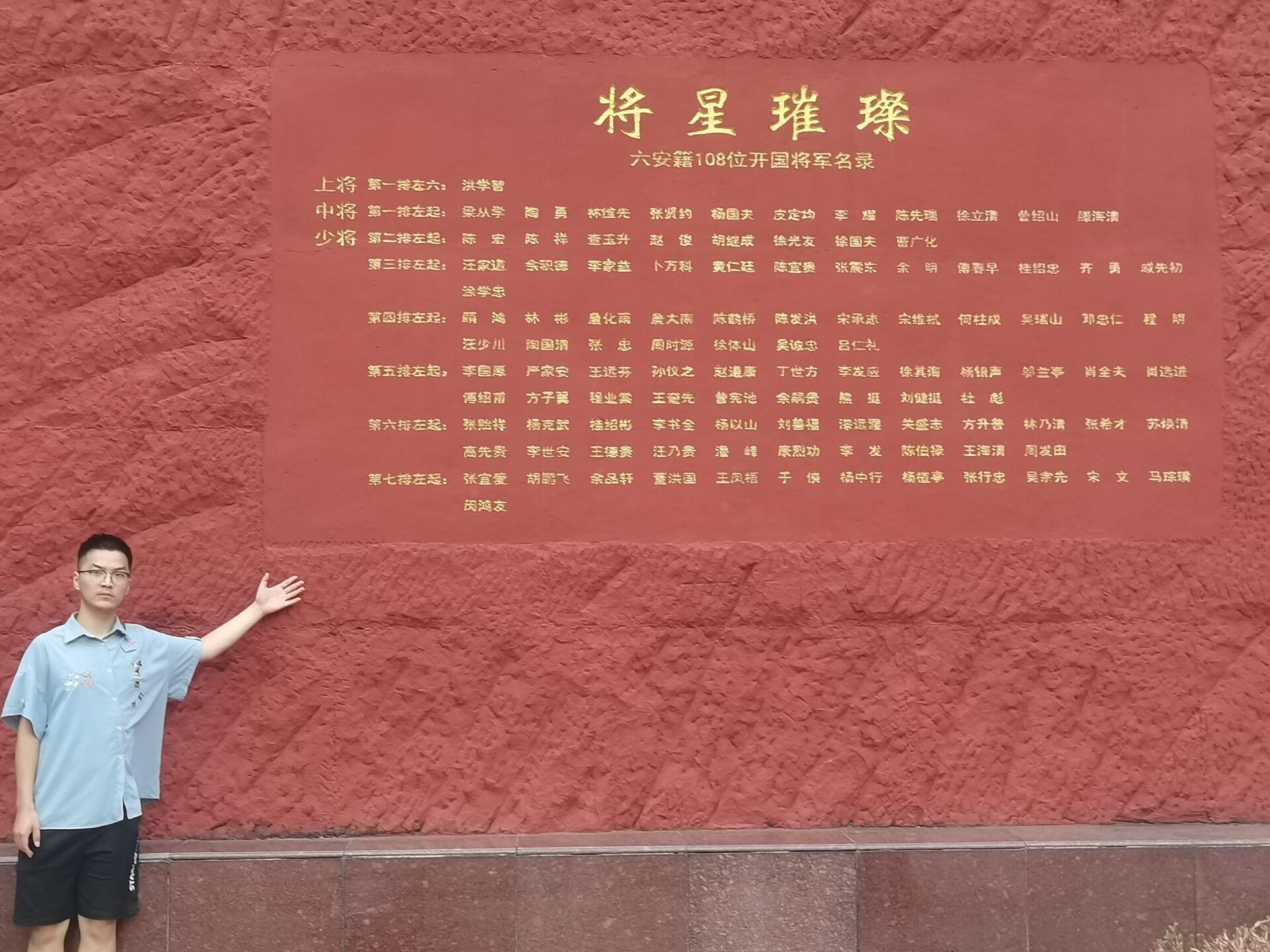 首先,在解说员的带领下,实践团成员瞻仰了烈士纪念碑,了解了革命烈士的战斗历史。通过解说员的讲解,实践团成员深刻体会到了革命年代的不易与艰难,也深刻理解了“皖西几郎为国殉,战死疆场留青名”这句诗的真正含义。随后,实践团成员参观了皖西籍108位将军事迹陈列馆、悼念广场以及祠、亭等多处纪念建筑,深刻感受到人民英雄的爱国情怀与革命情操。最后,实践团成员在108位烈士悼念广场深深鞠躬,表达自己继承革命精神的决心。