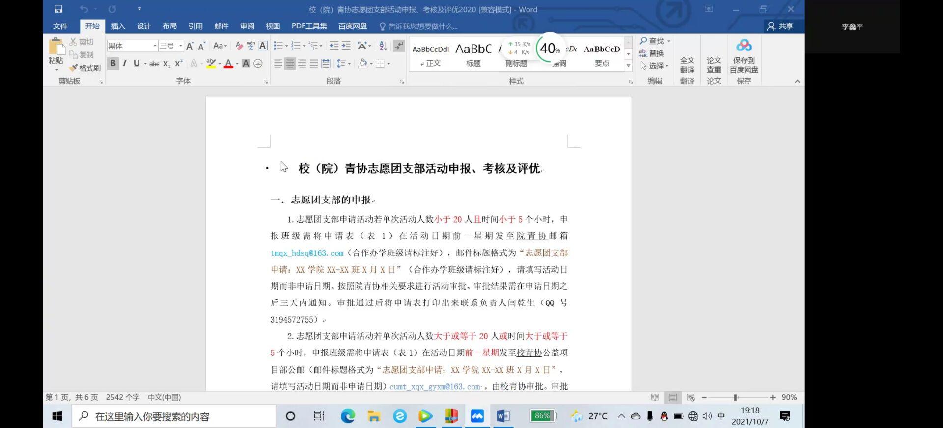 青协组织志工委员线上培训。此次培训会议由青协志工部部长闫乾生同学主讲,19级、20级、21级全体志工委员参会。