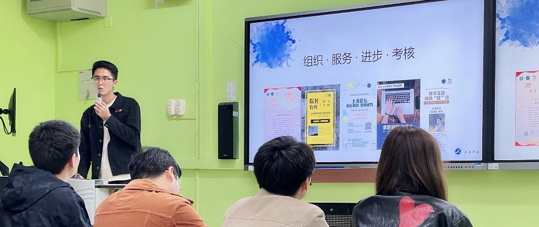 首先,研会主席韩飞虎致开场词,表达了对新生加入研会大家庭的热烈欢迎,并介绍了研会体系与本届研会成员组成,提出了今年研会的工作展望:组织建设、推陈出新、因地制宜、锻炼自我。他希望研会大家庭能增加各部门之间的联动,成员们均发挥特长、提升自我,塑造研会的良好形象。接下来综合部部长刘克梁、学术部部长张想想、文体部部长闫诗洋、生活部部长汪涛分别介绍各自部门的工作职责及新学年的规划,他们表示在接下来一年中,要尽心尽力,高效完成校研会、学院交给的各项工作。