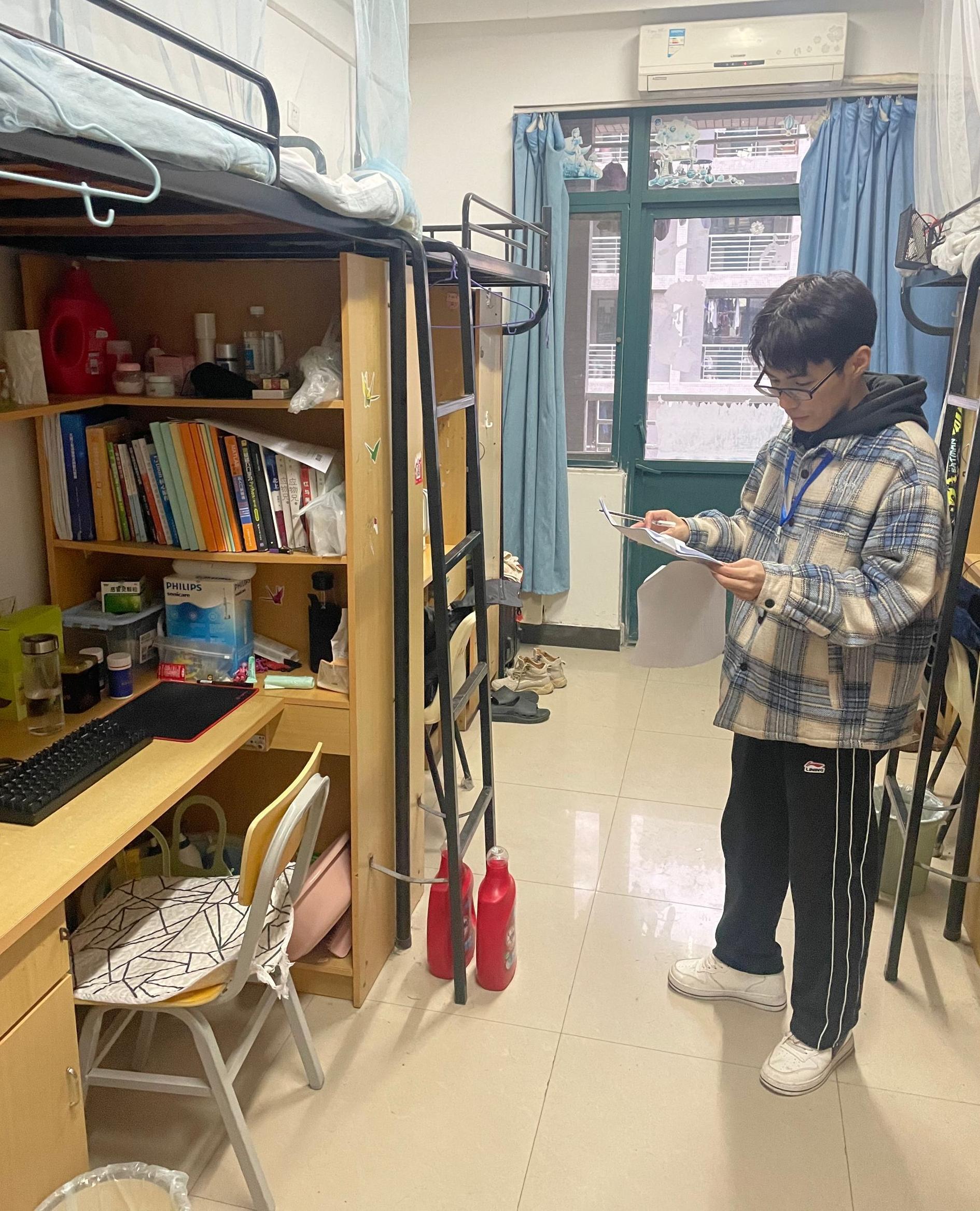 研究生自管会成员对研究生宿舍进行了全面检查。