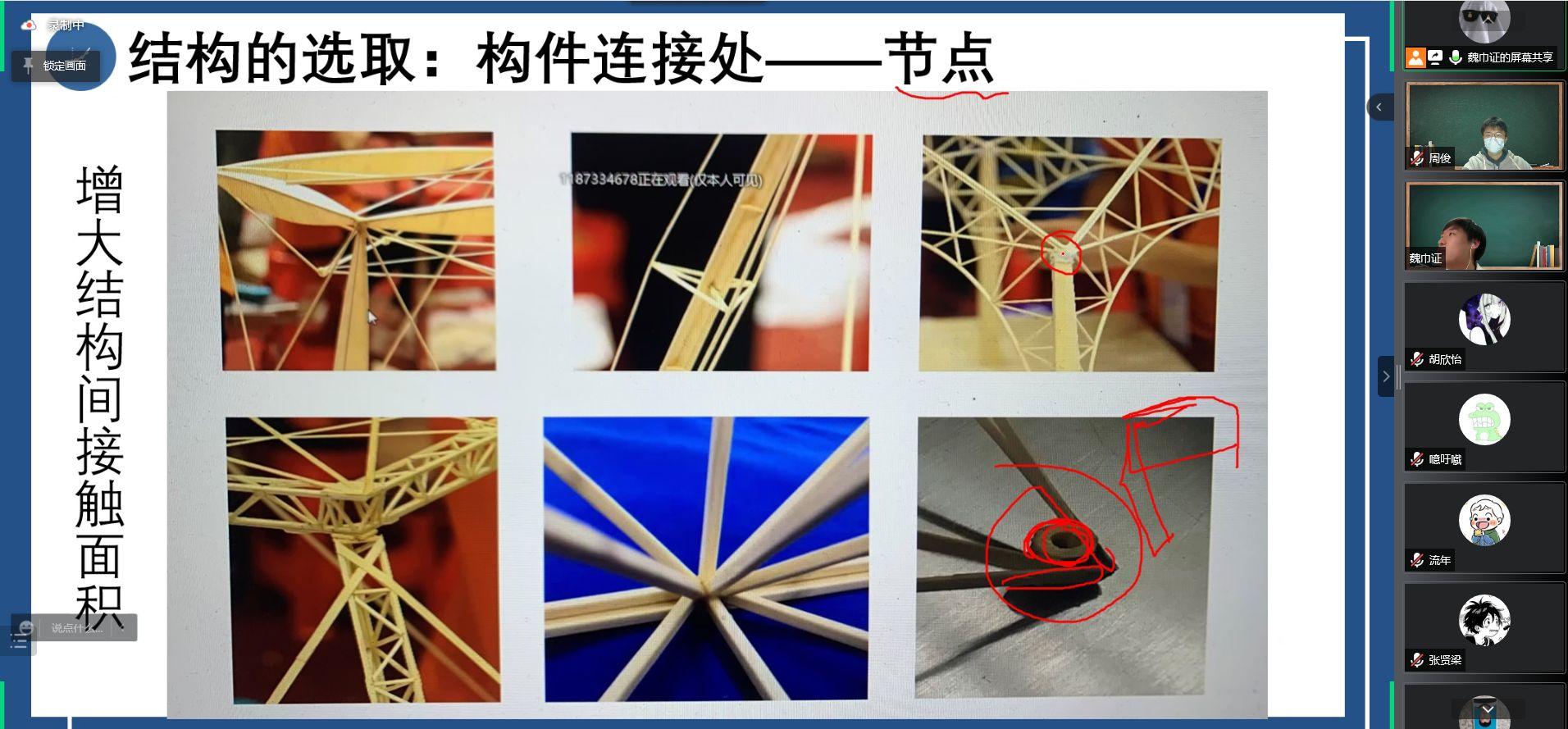 结构设计创新竞赛暨第十五届全国大学生结构设计竞赛校内选拔赛赛题发布会,结构设计辅导老师范力担任主讲人,学院创新协会学生负责人周俊主持此次会议。受疫情影响,本次会议采取线上方式进行。