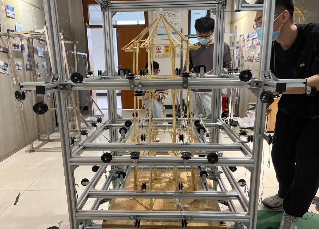 全国大学生结构竞赛是土木工程学科培养大学生创新能力、团队意识和科创思维的高水平学科性竞赛,被誉为“土木皇冠上最璀璨的明珠”。比赛前期,创协的负责人在赛氪网站发布团队报名方式,并进行赛题讲解、制定评分标准。确定报名名单后及时发放材料和工具,按照规定时间收集模型并称重。5月8日全天,创协的各位同学在加载试验地点为各个参赛的小组进行测试。同学们积极参与本次比赛,10组专业组、50组mini组,共计205人参赛。最终经过专业的加载试验后,共有16个参赛组成功晋级。