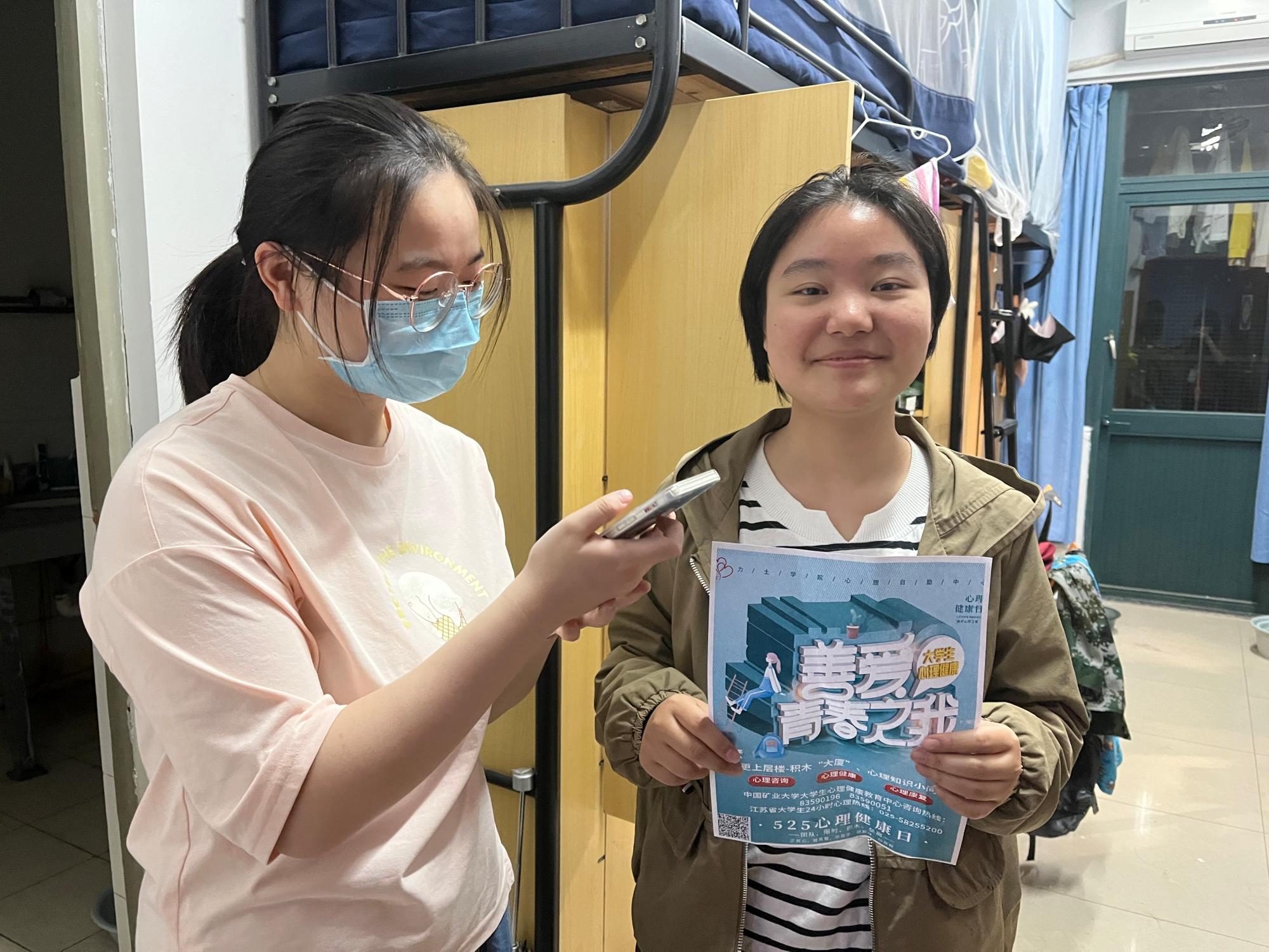 大学生心理健康自助中心在桃三与竹四宿舍楼中进行“善爱青春之我”——5·25大学生心理健康日宣传活动,宣传对象主要为52av
