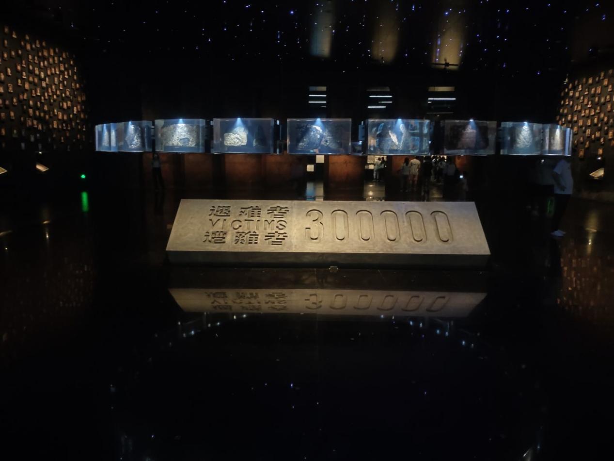 图为南京大屠杀史实馆中“300000遇难者”的石碑