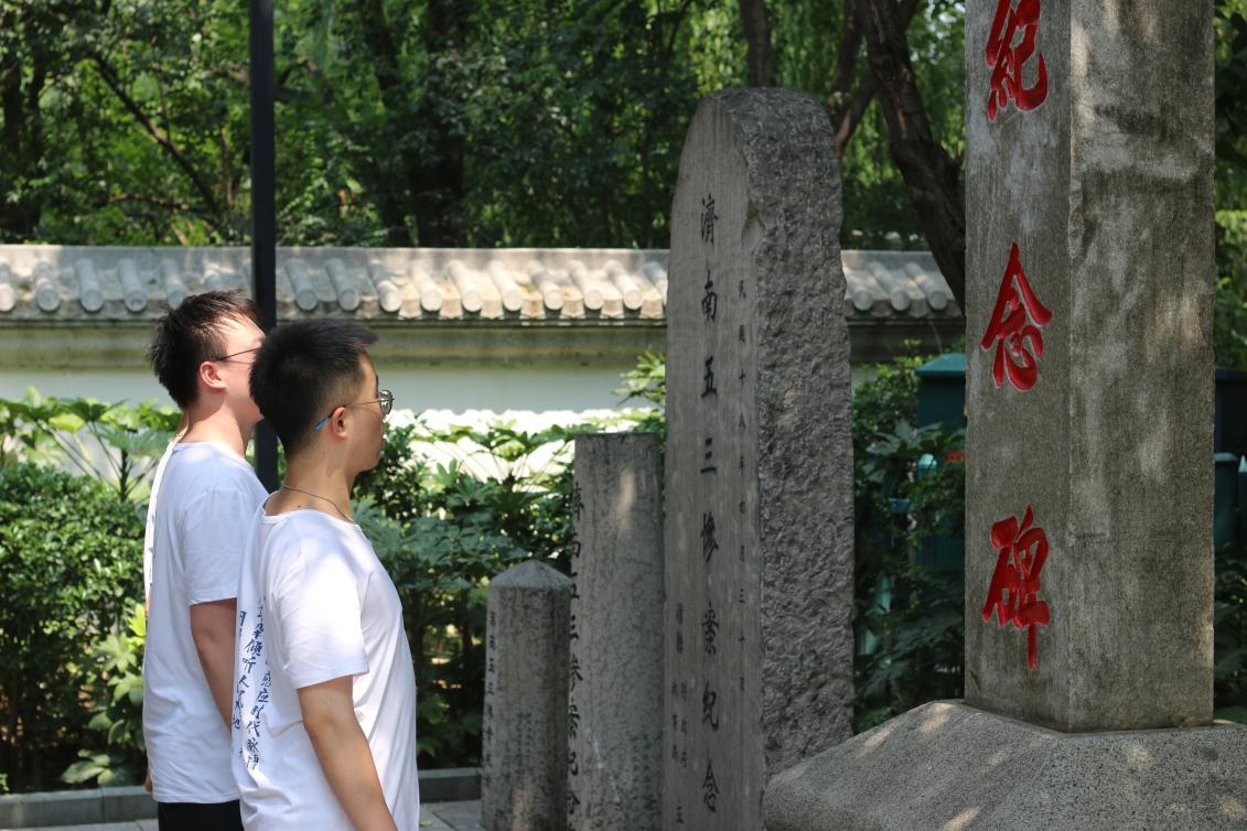 来到五三惨案纪念馆,实践团成员深入了解了1928年那段惨痛的历史——由于蒋介石一味妥协退让并下达不抵抗命令,大量中国军民遭到屠杀。日军于 5月 3 日残忍地杀害了外交官蔡公时等人,并进攻北伐军驻地,在济南制造了震惊国人的“五三惨案”。实践团成员在五三惨案纪念碑前默哀,心潮起伏、思绪万千。习近平总书记曾说过:“以史为鉴,才能避免重蹈覆辙。对历史,我们要心怀敬畏、心怀良知。”实践团成员深刻认识到,要从历史中感悟社会发展的轨迹,总结成败的经验教训,在对历史的深入思考中汲取智慧、走向未来。