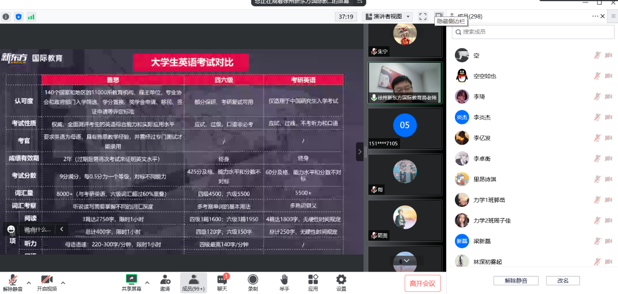 2022级新生更好的规划大学期间的英语考试,9月28日下午,特邀徐州新东方国际教育高博骁老师于线上腾讯会议,举办“大学英语考试”线上讲座活动,本次讲座由2022级辅导员朱宁老师主持。