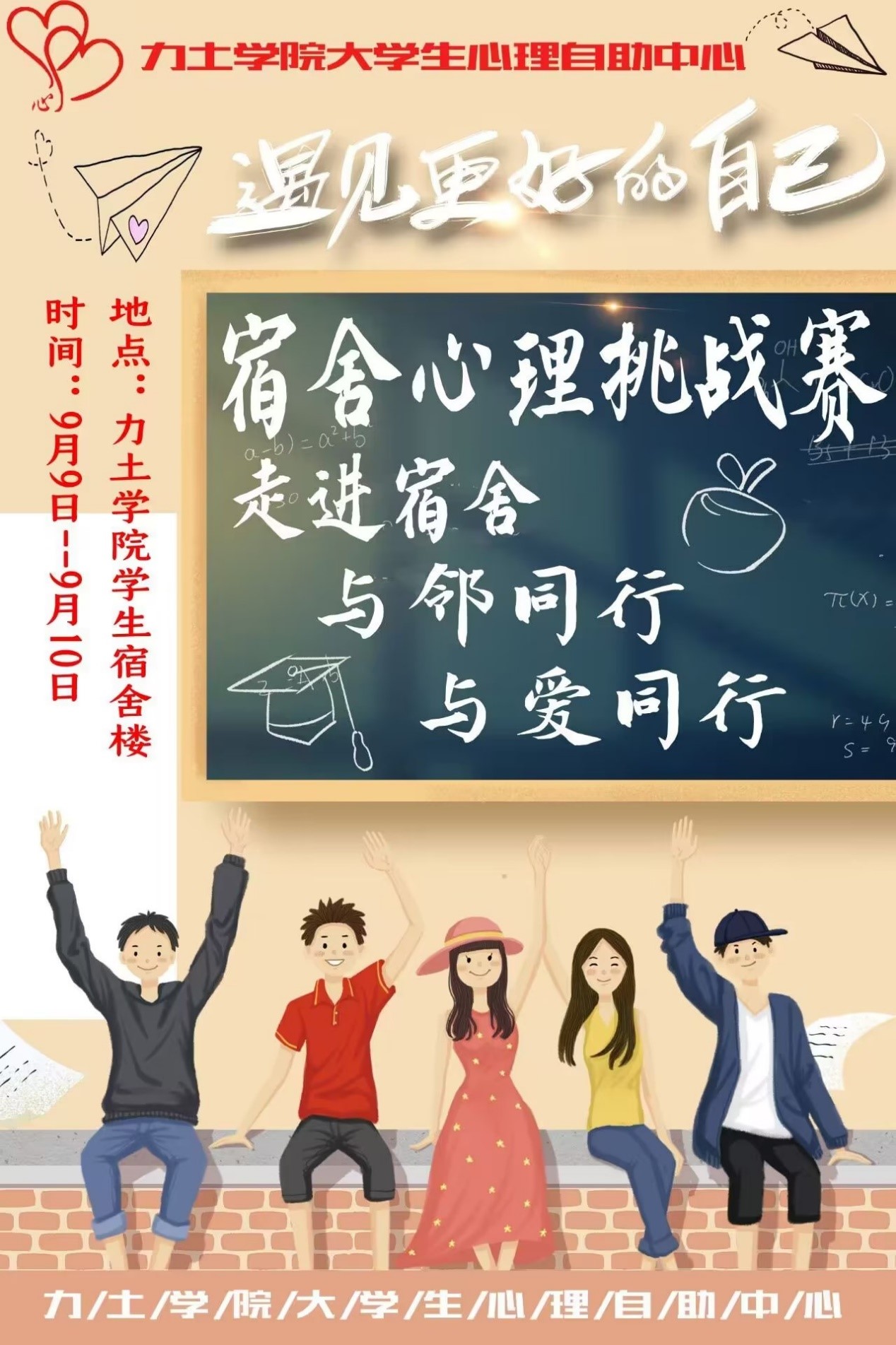 大学生心理自助中心于学院学生宿舍楼举办“走进宿舍,与邻同行,与爱同行”宿舍心理挑战赛。此次活动由学院大学生心理自助中心项目部承办。