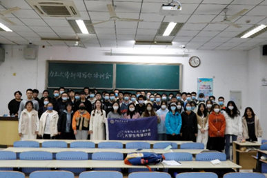 大学生传媒中心指导老师张琳和杜昕以及全体传媒中心的成员参加本次培训会。