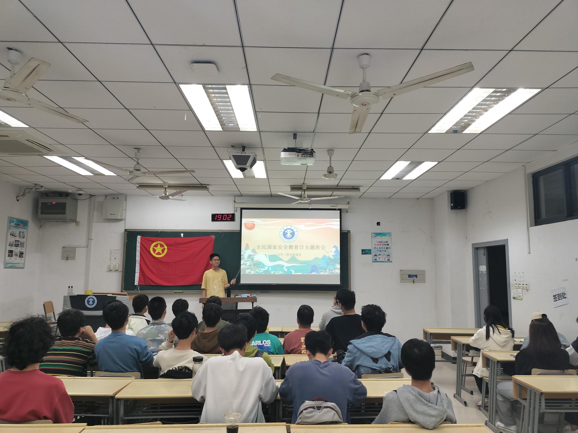 活动共分为三个部分。第一部分是国家安全教育。首先,班长潘志恒同学介绍了国家安全的含义与基本内容,简述了我国在国家安全方面所做的措施,并强调了国家安全的重要性及对于我们普通人的意义。接着,潘志恒同学又阐述了作为大学生应该如何保护国家安全,同时科普了国家安全的相关法律常识。最后,潘志恒同学组织大家进行国家安全知识竞赛,同学们踊跃参与、积极回答,加深了对国家安全知识的了解。第二部分是“追寻红色记忆,缅怀英雄先烈,弘扬爱国精神“团日活动,团支书左进宇同学向同学们介绍了伟大的淮海战役的历史,并展示相关红色影片,增强了同学们的爱国主义情怀。第三部分是学风建设方面。团支书左进宇同学总结了上学期同学们学习中存在的问题,分析问题出现的原因,并提出了改进建议,希望同学们能在接下来的时间里努力学习、共创辉煌。