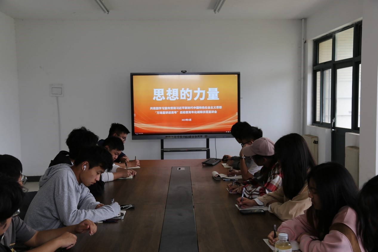 各团学组织以及各班团支部广泛开展了“思想的力量”——“青年讲师团”学习宣传贯彻习近平新时代中国特色社会主义思想示范宣讲会。此次宣讲会中,各团学组织主席团、部长团以及部分学生干部线下参会,各班团支部及团员线上参会。