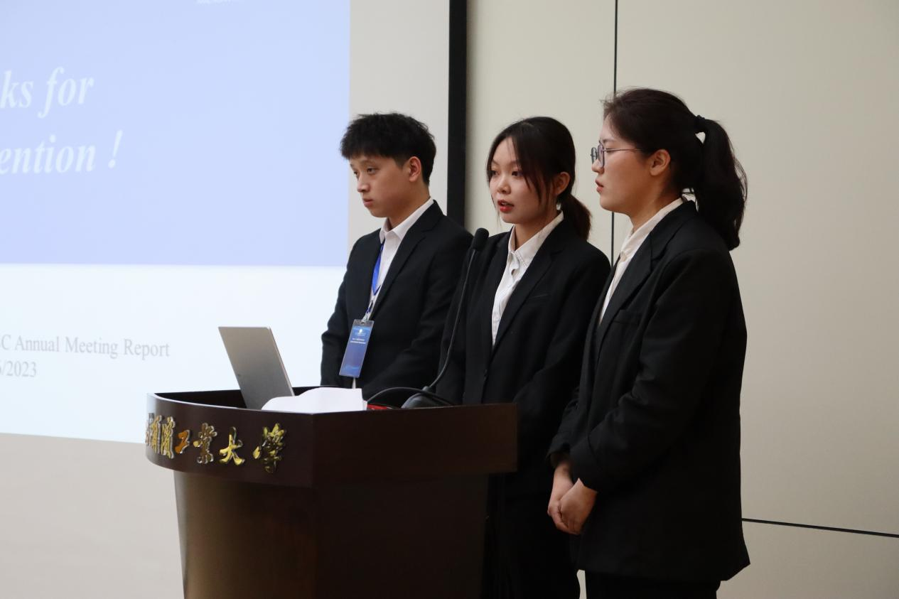 分会的负责人闫世源介绍了学院分会组织的建设、举办的相关活动以及对于分会未来工作的展望。在Paper Competition阶段,围绕这本次学生研讨会的主题“Infrastructure challenges: towards sustainable city development in changing climate — taking (your city) as an example.”学院分会成员刘雪凡、刘姝宇同学以徐州地铁应对气候变化导致的灾害性天气的措施为题目进行了演讲汇报,汇报结束回答了专家提出的问题,最终获得优胜奖。