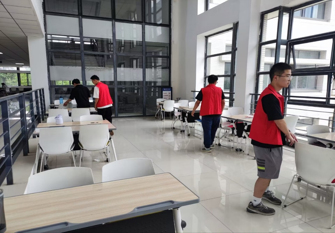 下午三点,各位志愿者到达博五教学楼集合并进行任务分配。在与博学楼管理人员沟通协调后,志愿者们分成三组前往博五教学楼的A区、B区和C区开展本次活动。在卫生打扫过程中,志愿者们分工明确,擦除教室门口小黑板上逾期的内容,摆齐教室和公共区域的桌椅,擦拭课桌与讲台上的污渍,对博五教学楼进行了全方位的清洁。经过一个多小时的清扫整理,志愿者们高标准地完成了本次志愿活动。